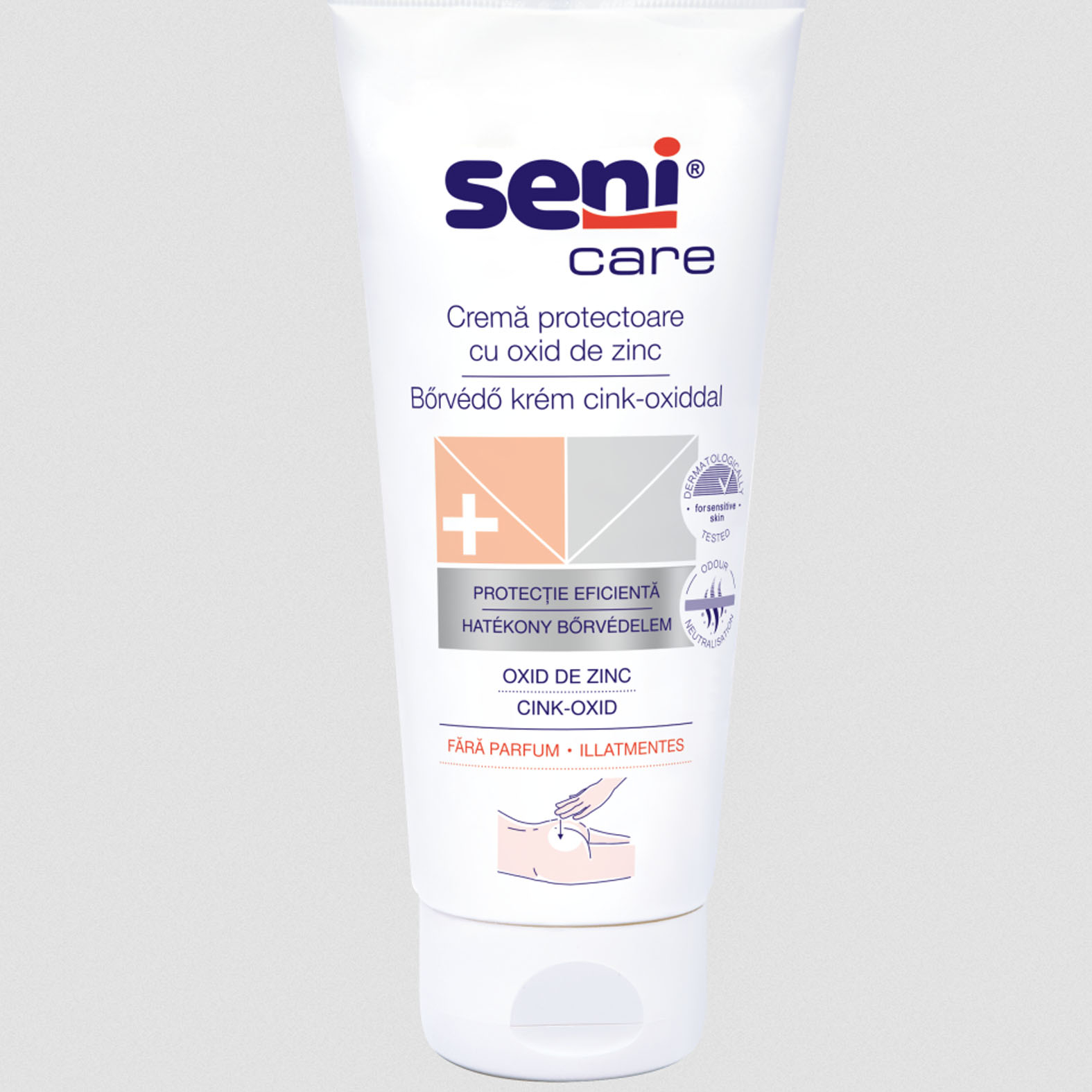 A Seni Care cink-oxid tartalmű bőrvédő krémjének használata minden pelenkacsere alkalmával javasolt, irritált, kipirosodott bőrfelületre. Védelmet nyújt a gyulladások, kidörzsölődések és felfekvések ellen.