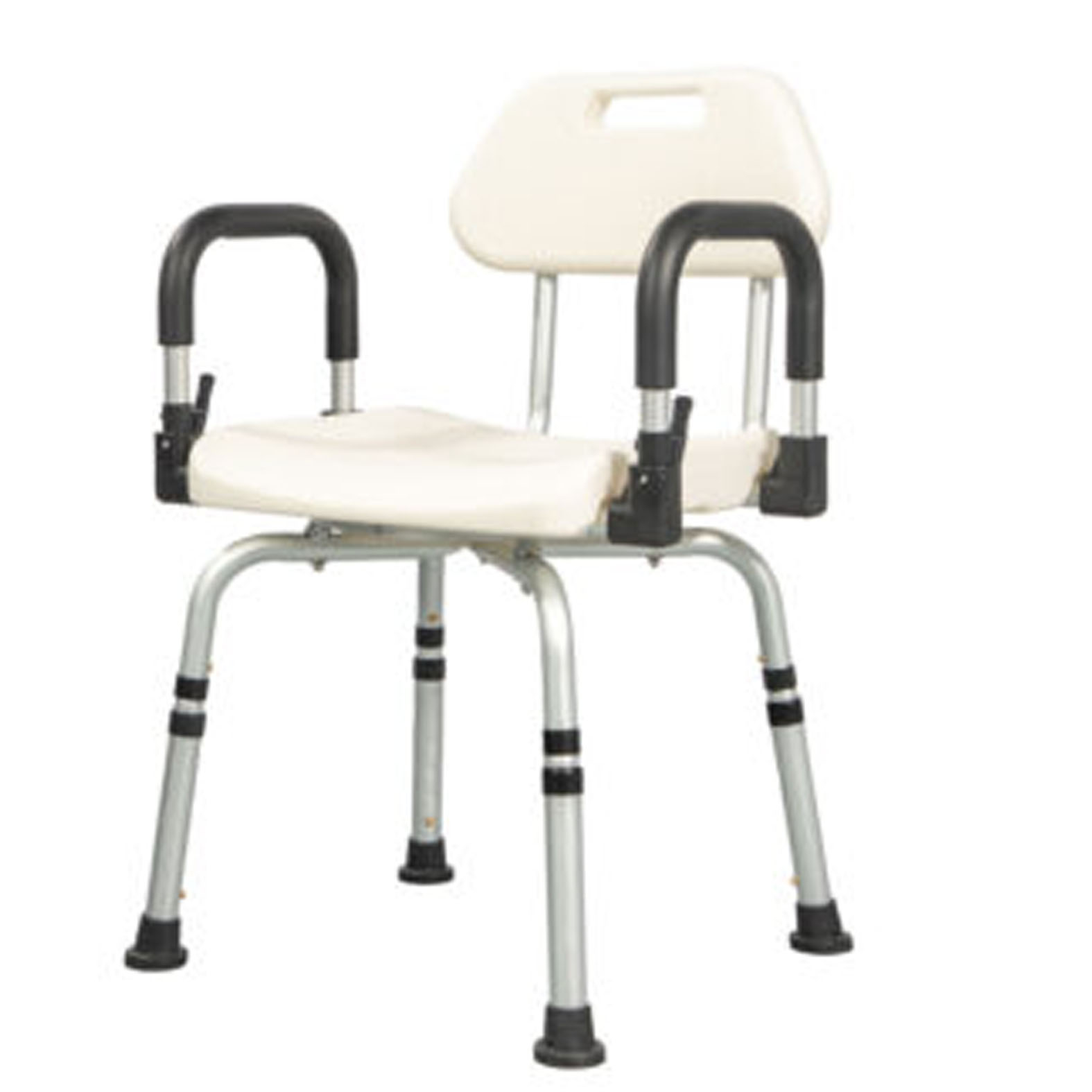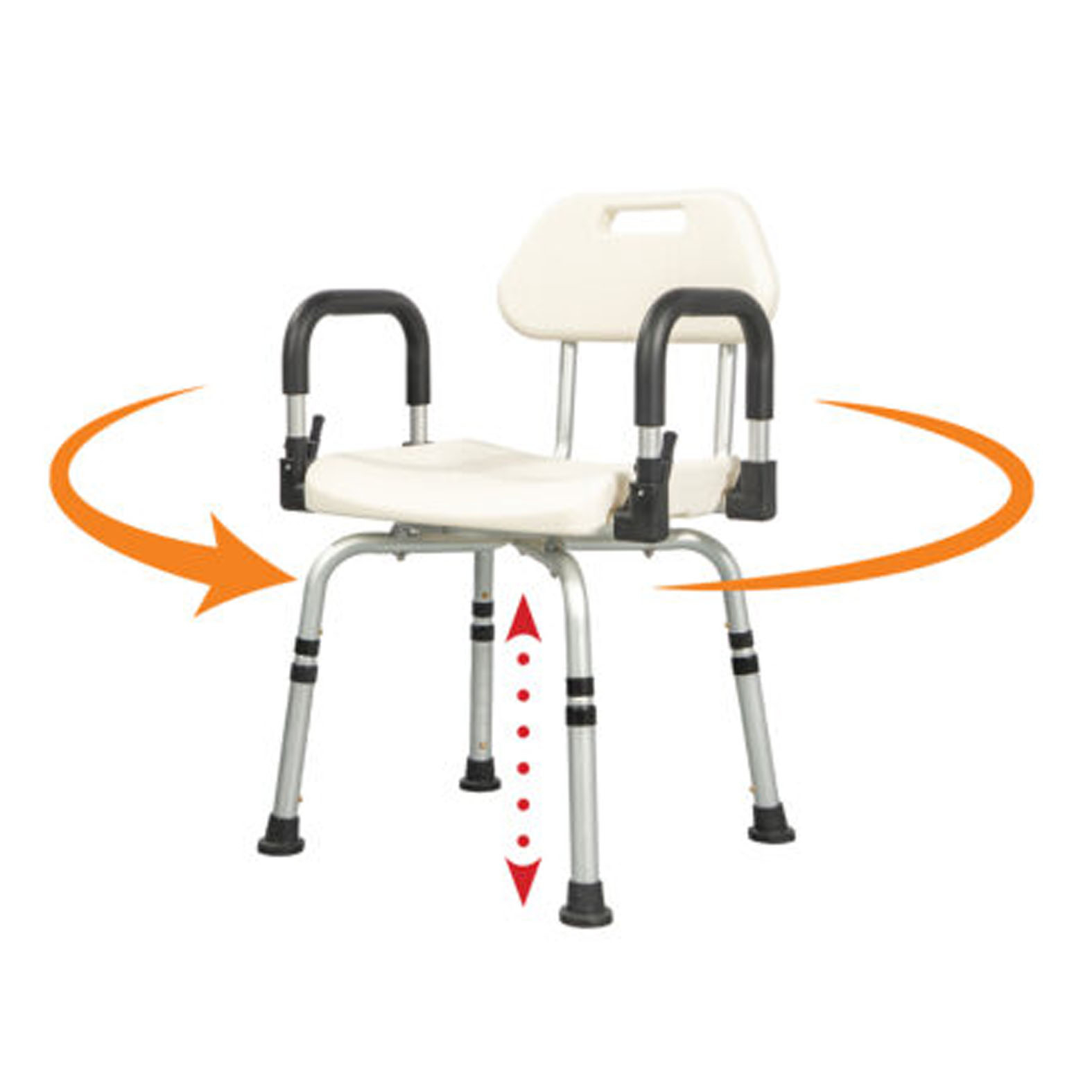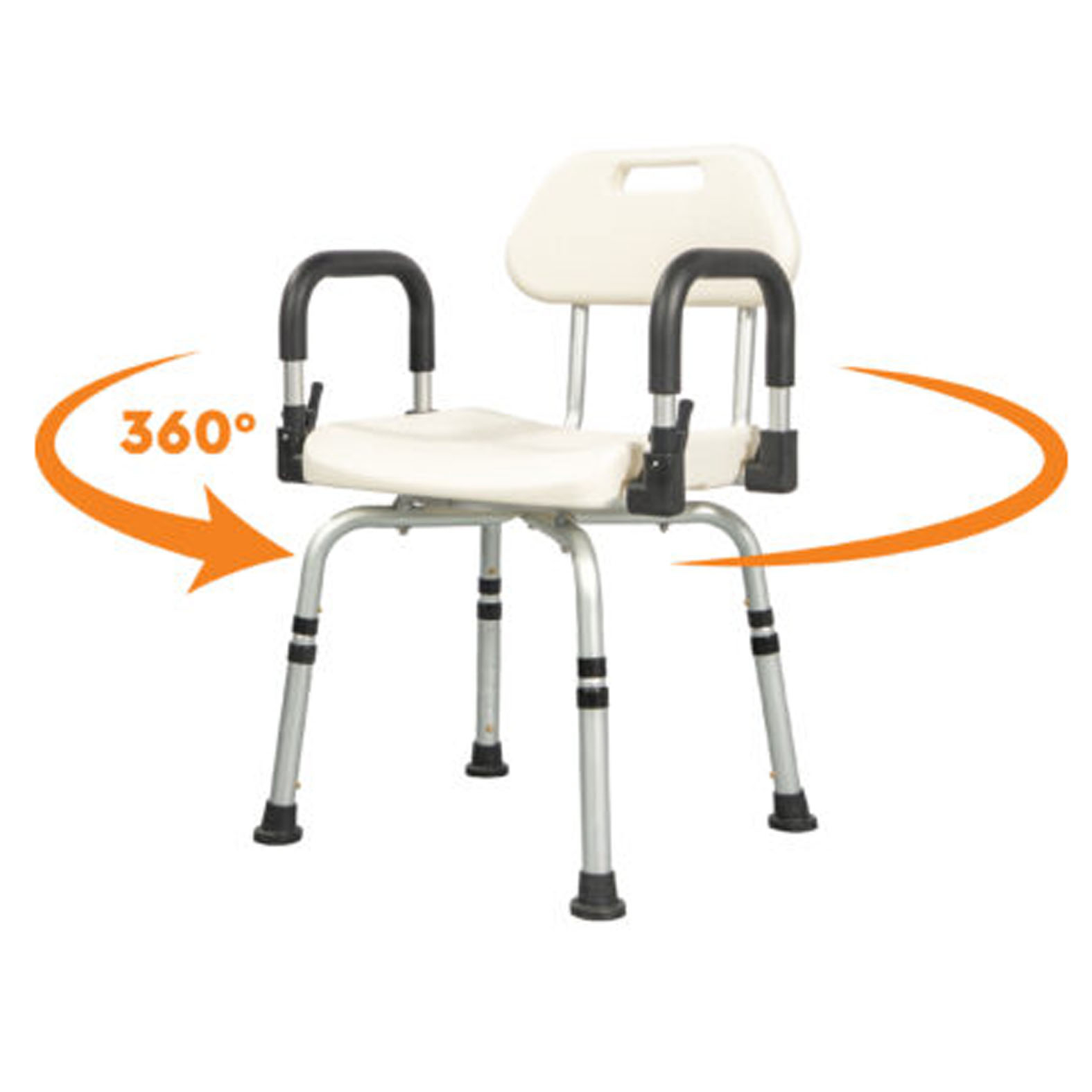 Ez a zuhanyszék biztonságos és kényelmes megoldást nyújt a fürdéshez, különösen mozgásukban korlátozott személyek számára. Stabil tartást biztosít, elősegíti az önállóságot, és csökkenti a kifáradás és az elcsúszás kockázatát. A szék csúszásgátló lábakkal, kényelmes háttámlával, valamint 360°-ban forgatható üléssel rendelkezik a könnyebb pozicionálás érdekében. Állítható magassága lehetővé teszi az egyéni beállítást, míg a felhajtható karfák extra támogatást nyújtanak leüléskor és felálláskor. Könnyű, de stabil alumínium váza tartós és könnyen mozgatható.