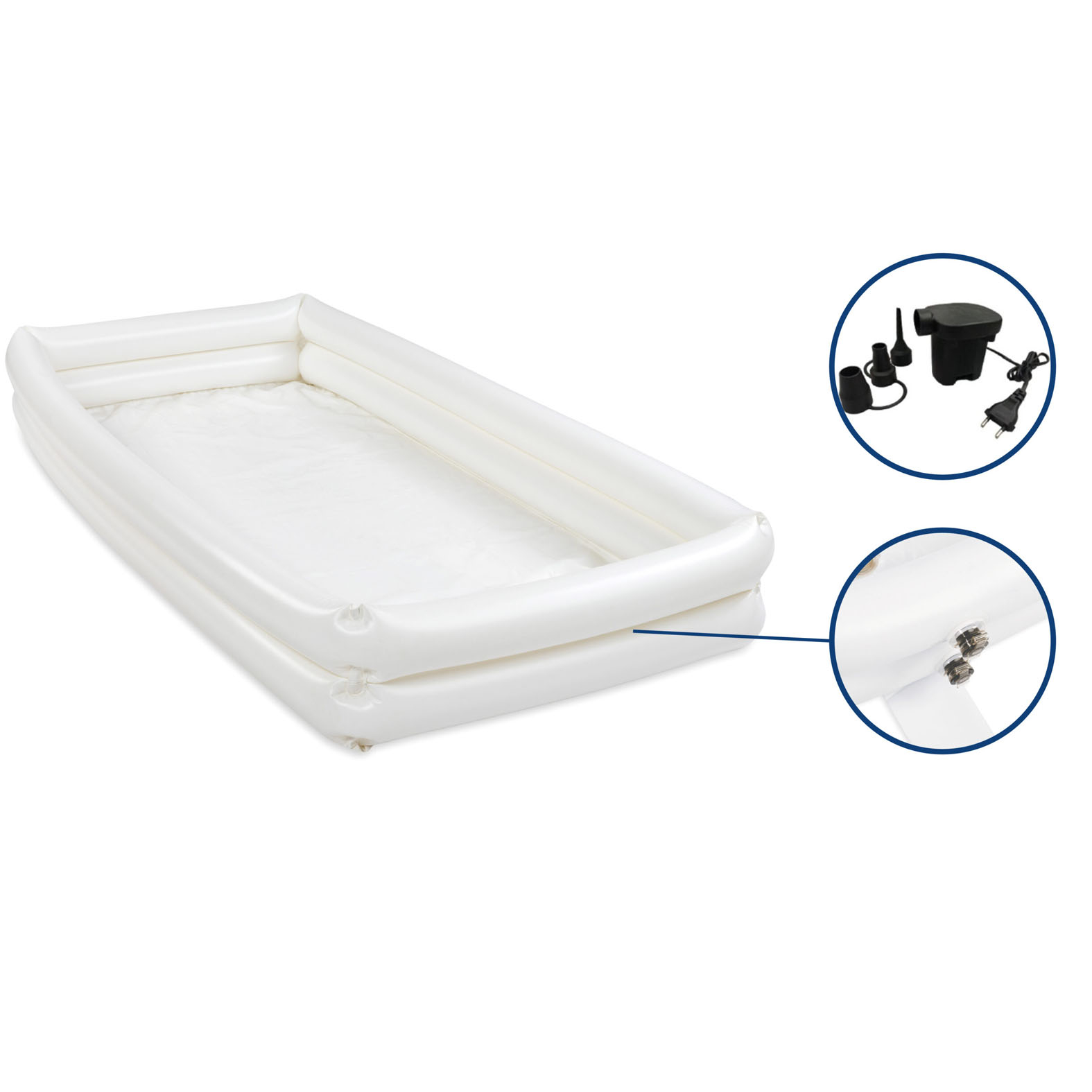 Hordozható, felfújható fürdőkád ideális megoldás idősek, mozgásukban korlátozott vagy ágyhoz kötött betegek gondozásához.