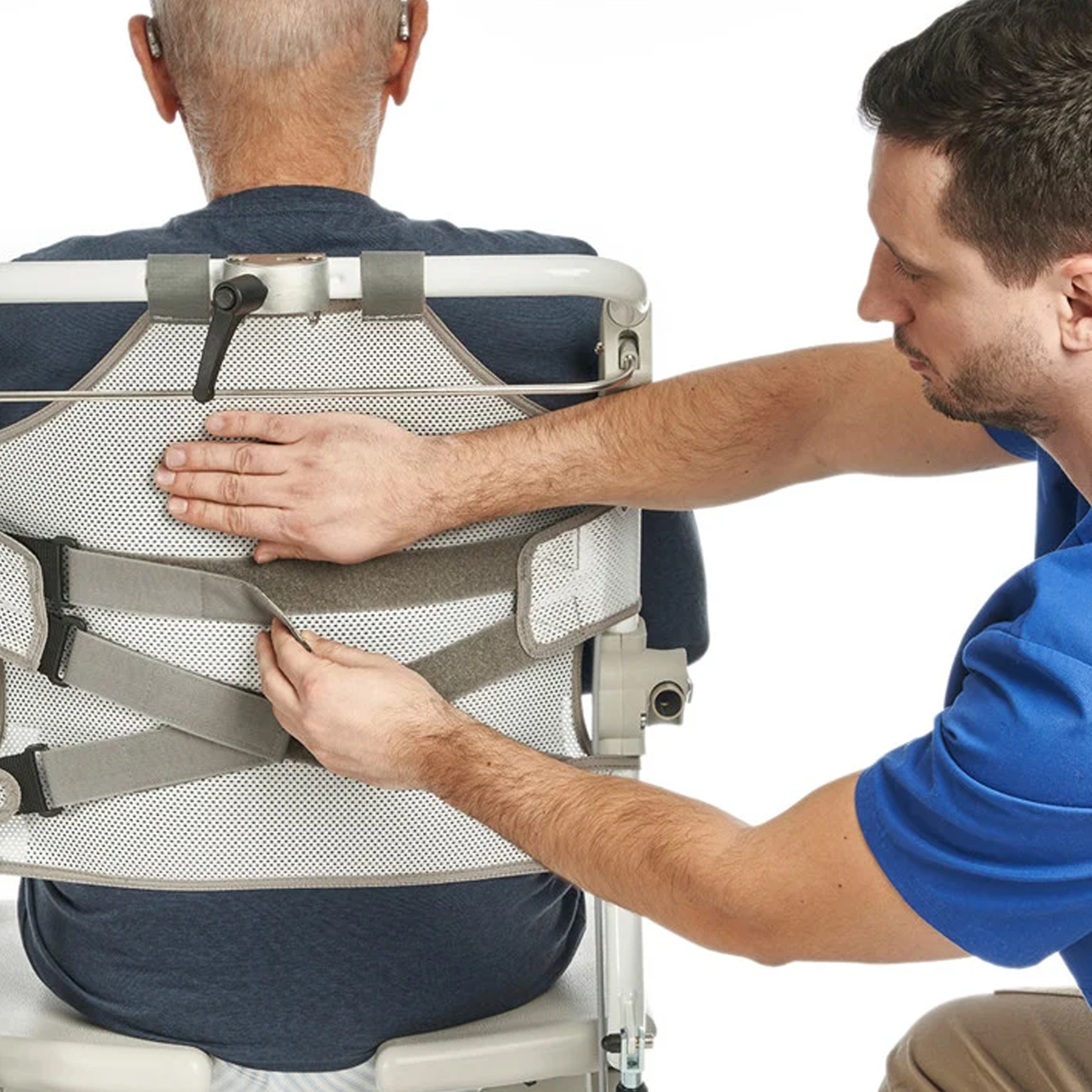 - az ülés hátul nyitható, így a gondozó könnyen hozzáférhet, amikor segíti a felhasználót a személyes ápolási feladatokban