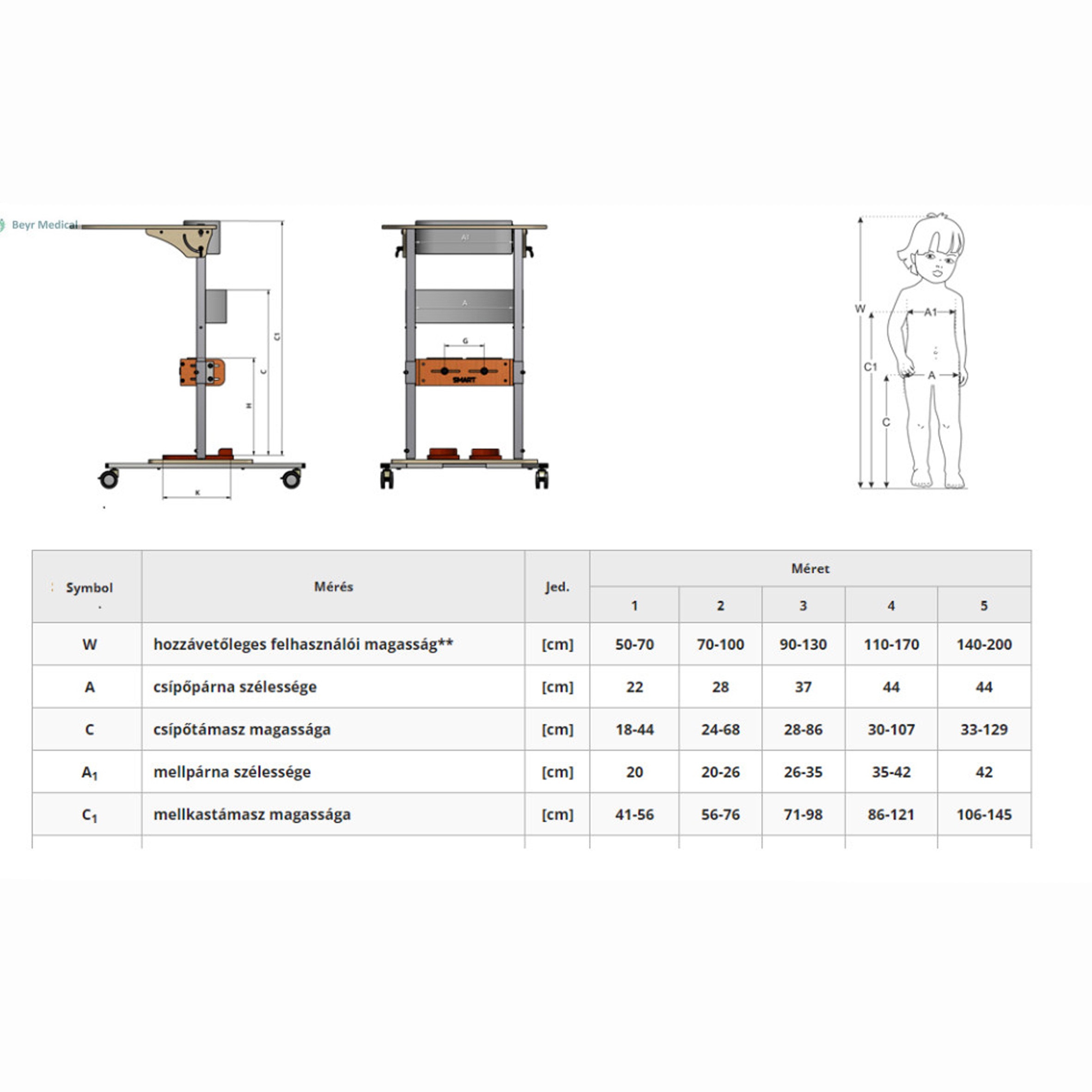 - A páciensnek is biztonságot és biztonságérzetet ad, miközben a felső végtagok mozgásszabadságát meghagyja