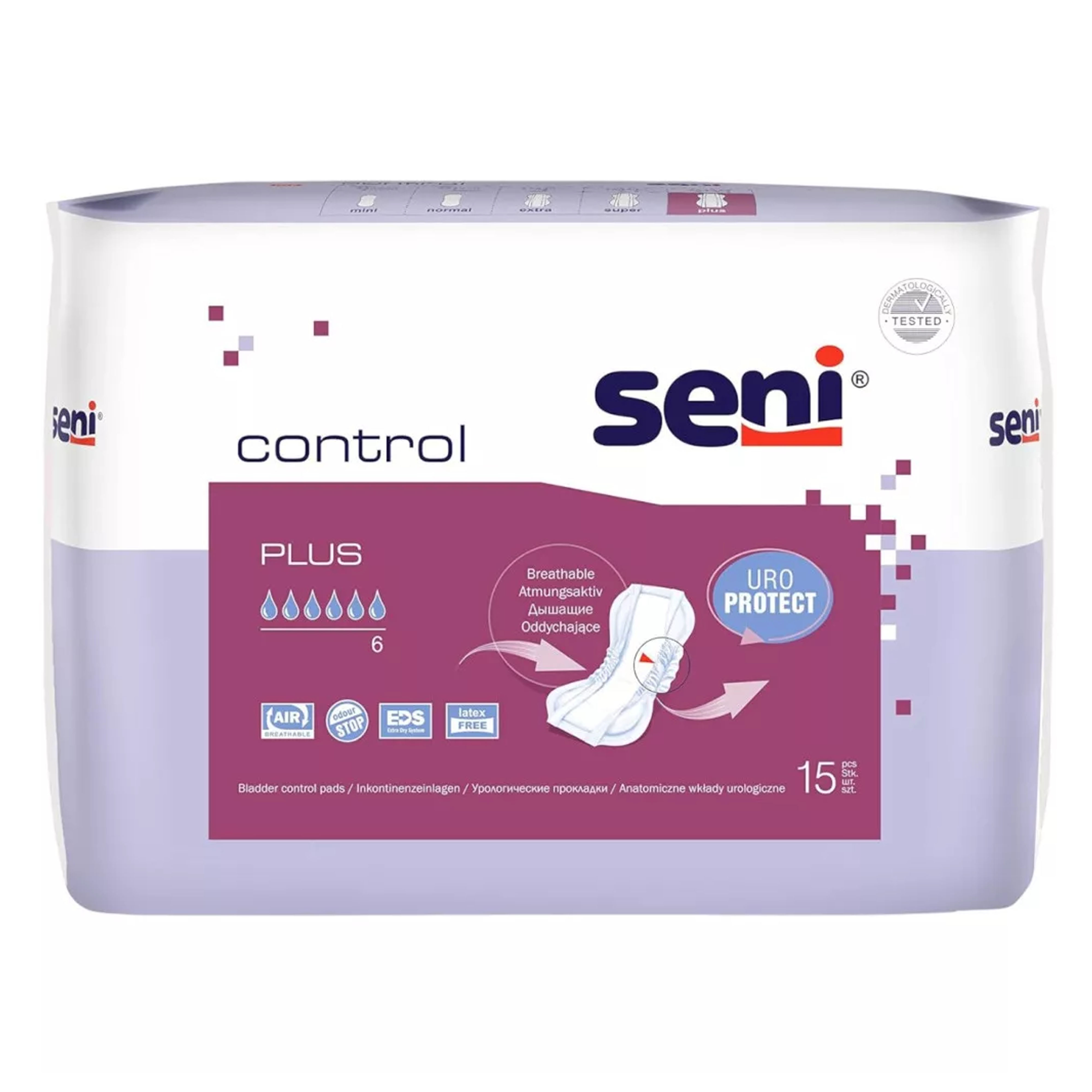 - A Seni Control Plus inkontinencia betét ideális választás enyhe vizeletinkontinenciában szenvedőknek, akik aktív életet élnek, és fontos számukra a kényelem, a biztonság és a diszkréció
