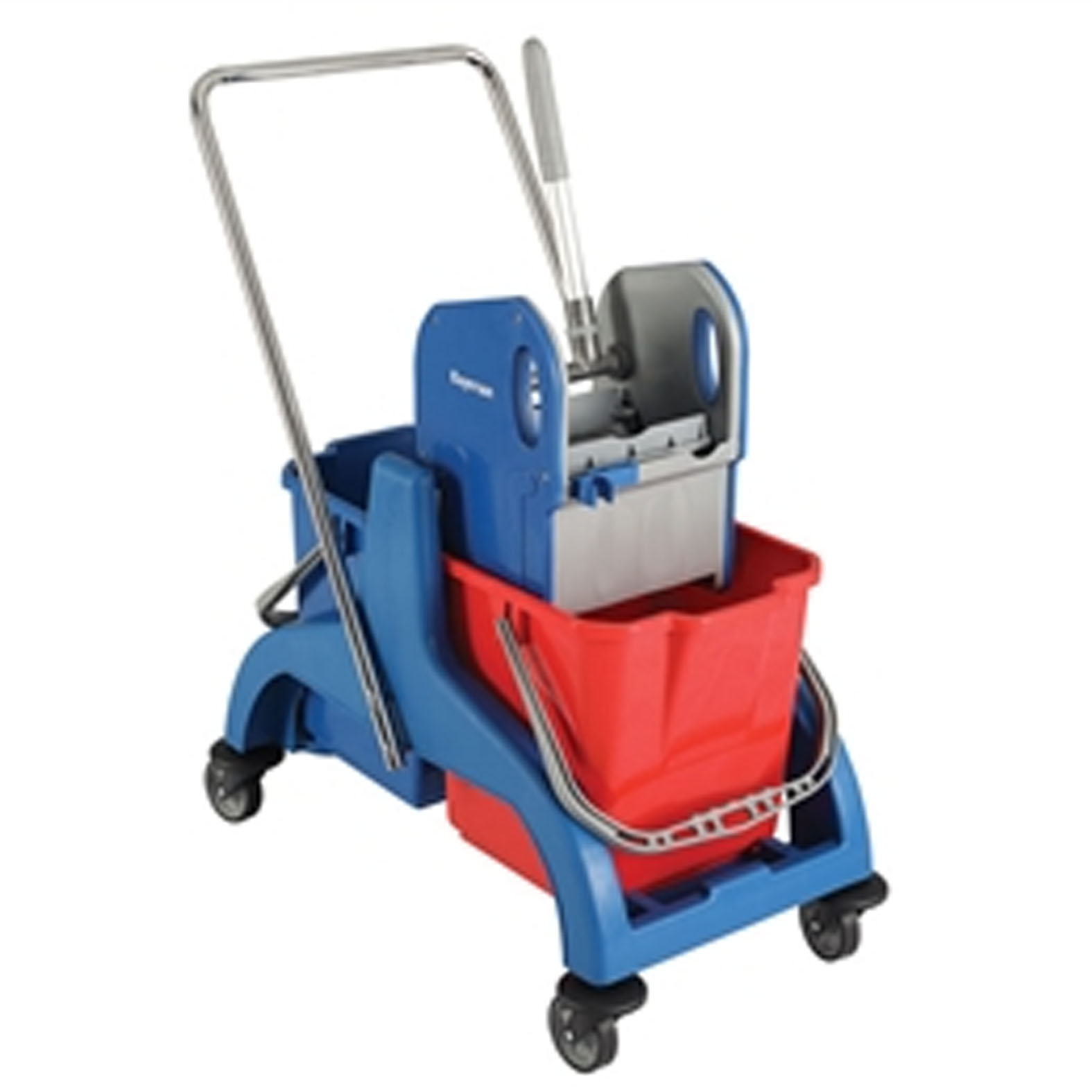 - 2 db 25 literes vödör, kék és piros, amelyek lehetővé teszik a tisztítóoldat elválasztását az öblítővíztől