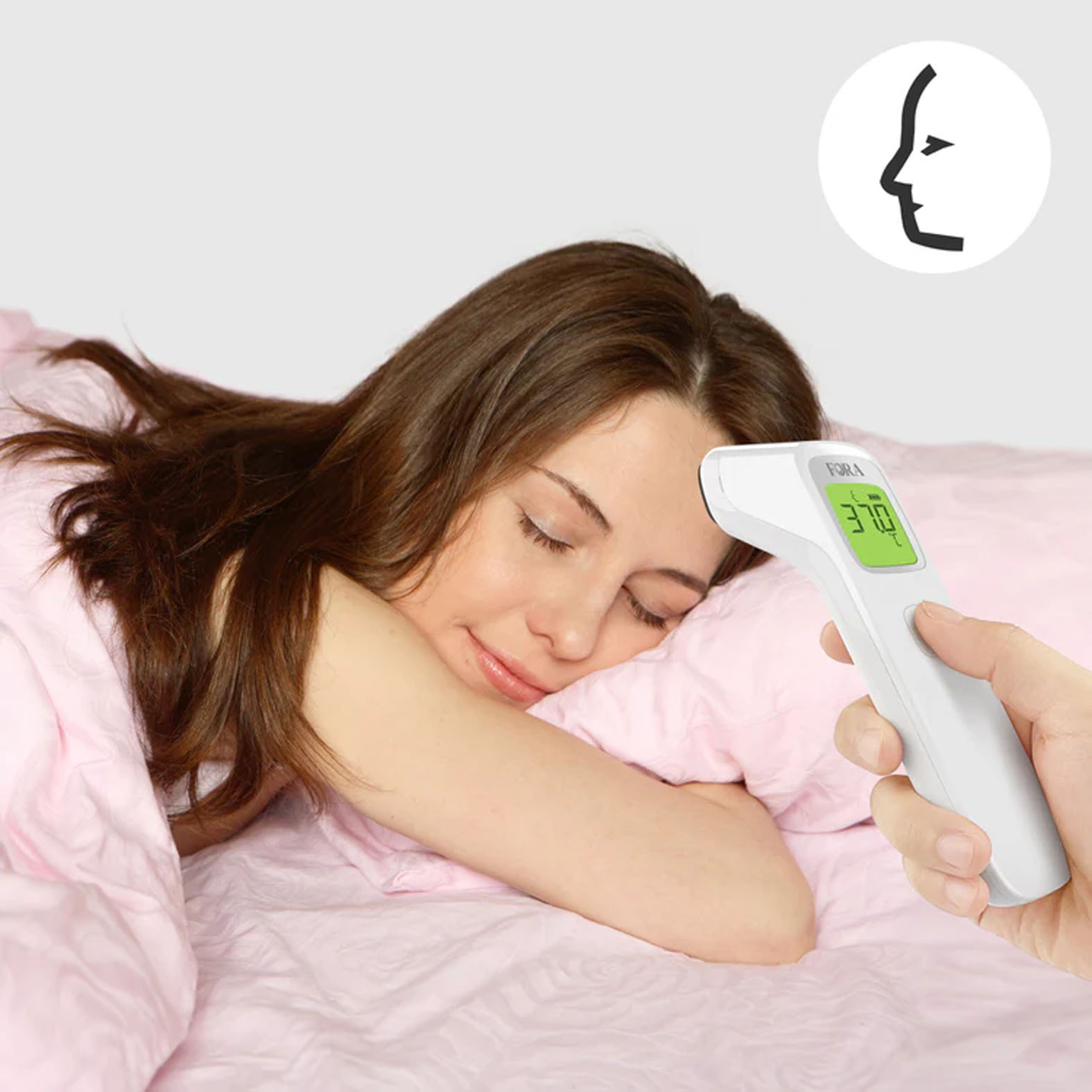 - nagy kijelző és lázriasztás – A FORA IR42 homloklázmérő háttérvilágítású LED-kijelzővel és nagy számokkal rendelkezik, így gyenge fényviszonyok között is könnyen leolvasható. A beépített lázjelző rendszer színkódolt kijelzéssel segít azonnal felismerni a láz különböző szintjeit.