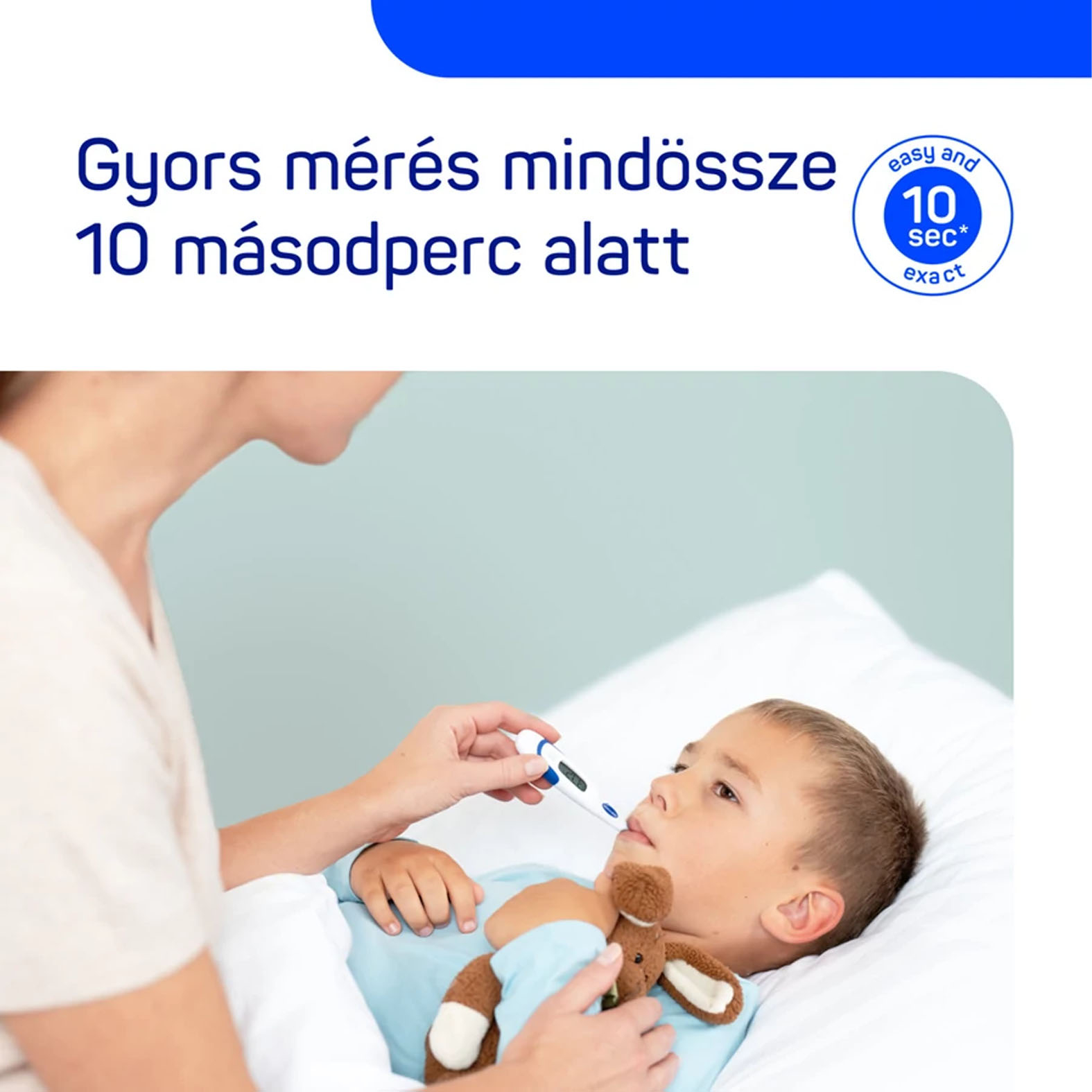 Gyors mérés 10 másodperc alatt: Digitális lázmérő gyors és pontos eredményekhez – ideális csecsemők, gyermekek és felnőttek számára.
