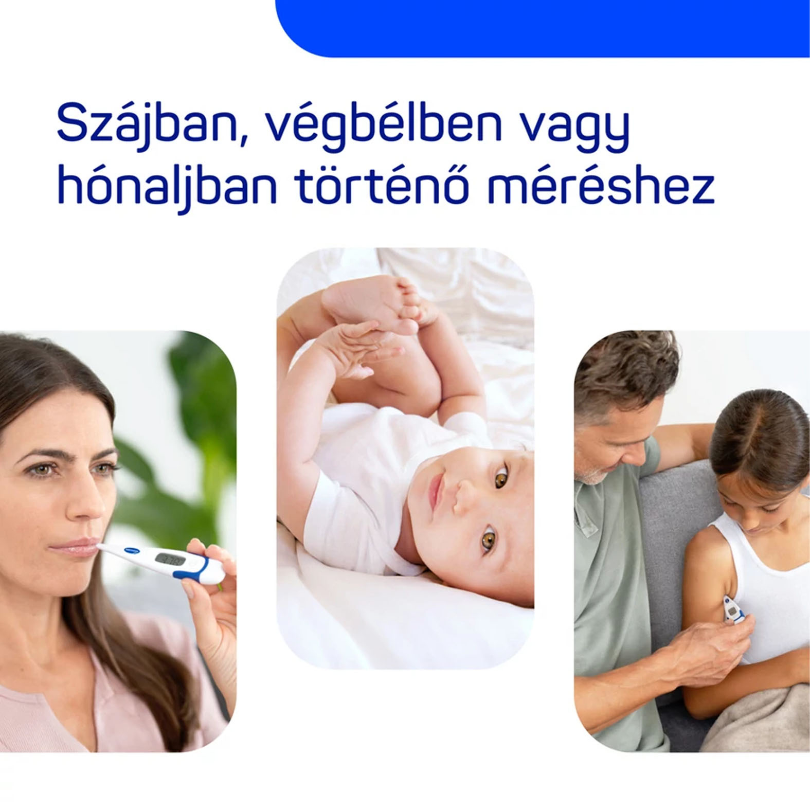 Pontos és sokoldalú: Klinikailag validált lázmérő eszköz szájban, végbélben vagy hónaljban történő méréshez.
