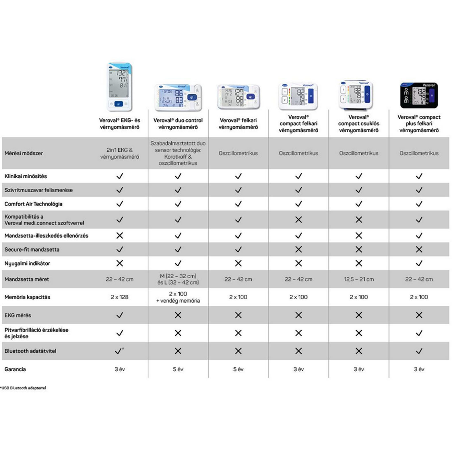 Az oszcillometrikus és a Korotkov mérési módszert ötvöző Duo Sensor technológiával gyártott Veroval® duo control automata felkaros vérnyomásmérő készülék szinte minden körülmények között pontos eredményeket rögzít, a szívritmuszavarban szenvedő betegek vérnyomását is pontosan méri. A termékre 5 év garanciát biztosítunk.