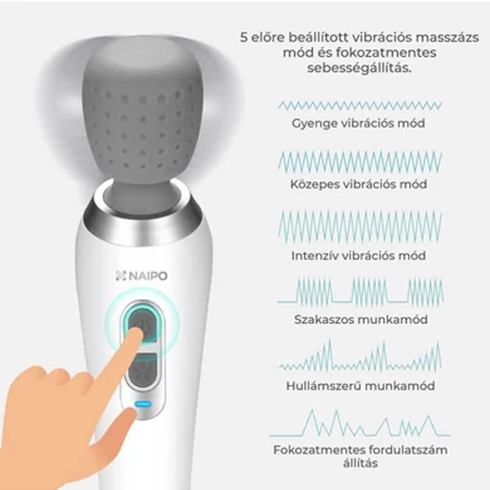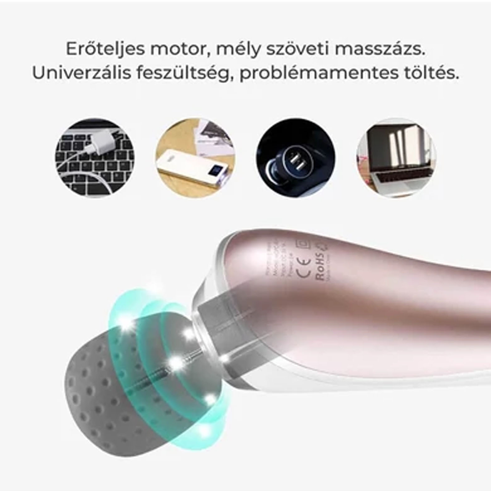 Erős motorral (8000 ford./perc) hajtva, amely egy átható vibráló mélyszöveti masszást biztosít használójának, ezzel segít ellazítani az izomlázat okozta görcsöket a fáradtságot és a test bármely pontján fellépő fájdalmat. Tökéletes masszázs a nyaknak, a hátnak, a vállnak, a deréknak, a lábfejnek, valamint az ízületi pontok érintésével ideális a teljes test ellazításához.