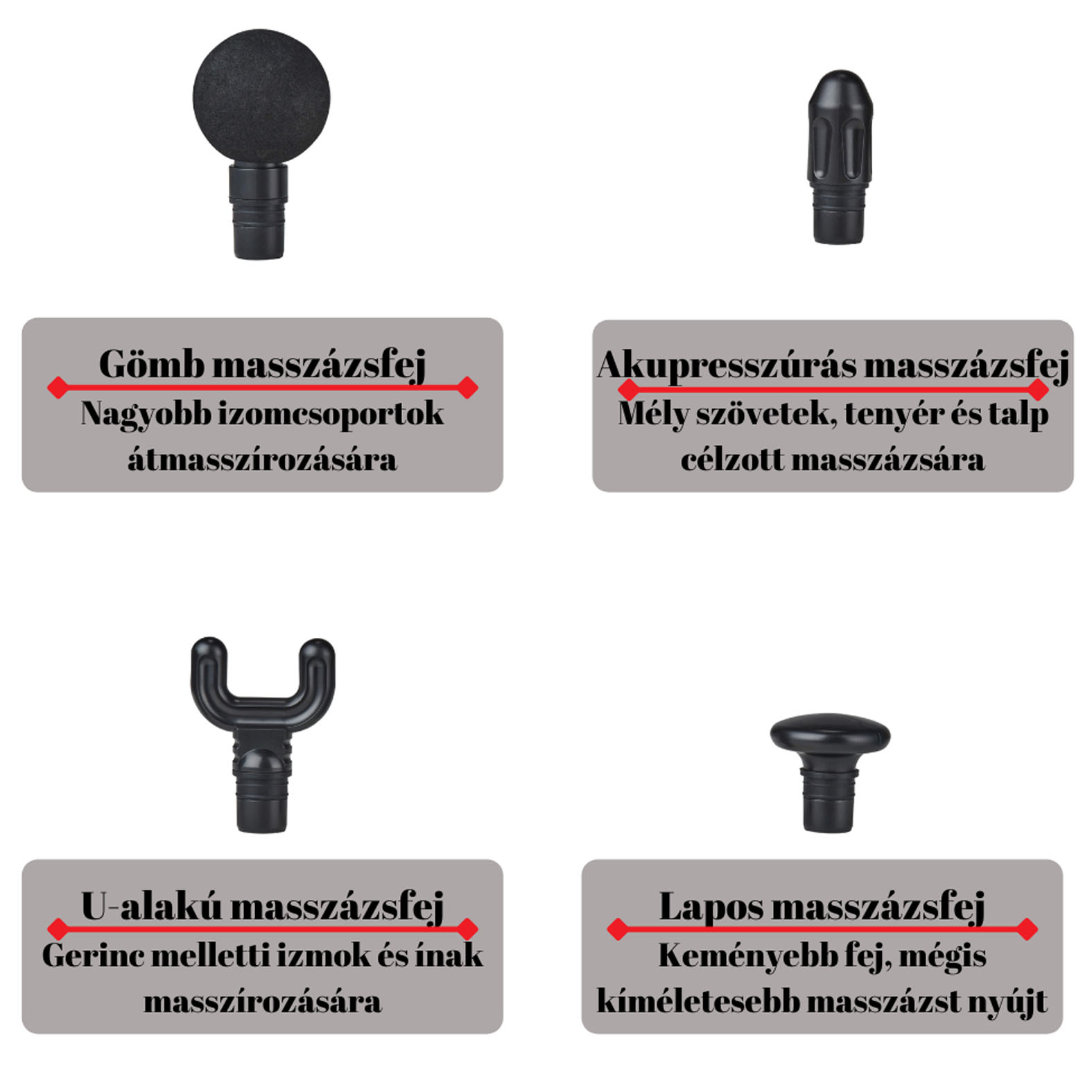 Extra hatékony, erőteljes masszázsterápiát biztosító eszköz, amit bárhova magával vihet. Kis mérete ellenére rendkívül intenzív masszázsélményt nyújt. Igazi segítség azoknak, akik görcsös, merev izmokkal küzdenek, vagy rossz tartásból, túlerőltetésből adódó izomfájdalmaik vannak. Ergonomikus formájának és cserélhető masszázsfejeinek köszönhetően számos testtájon hatékony: használhatja izomfájdalmak (nyak, váll-, hát-, láb- és derékfájás stb.) esetén, de rendszeres használata enyhítheti a stressz és az ebből adódó álmatlanság tüneteit is. Fascia lazító hatása miatt a sejtek, kötőszövet, izomzat regenerálódását is segíti. Ha többet is szeretne megtudni a vibrációs masszázspisztolyokról, valamint szeretne gyakorlati tanácsokat kapni a masszázspisztolyok használatával kapcsolatban, akkor ajánljuk figyelmébe blogcikkeinket!A masszázspisztoly magas frekvenciájú, precíziós vibrációs masszázzsal aktiválja az izmokat és a fascia hálózatot, továbbá serkenti a véráramot, jelentősen csökkentheti az izmok regenerálódási idejét és enyhíthet egyes izompanaszokat.