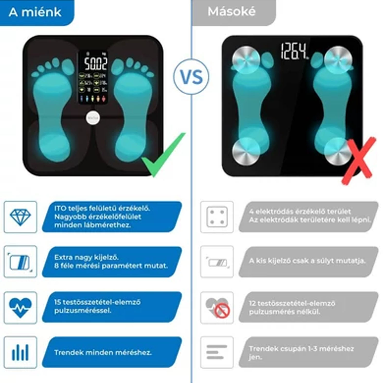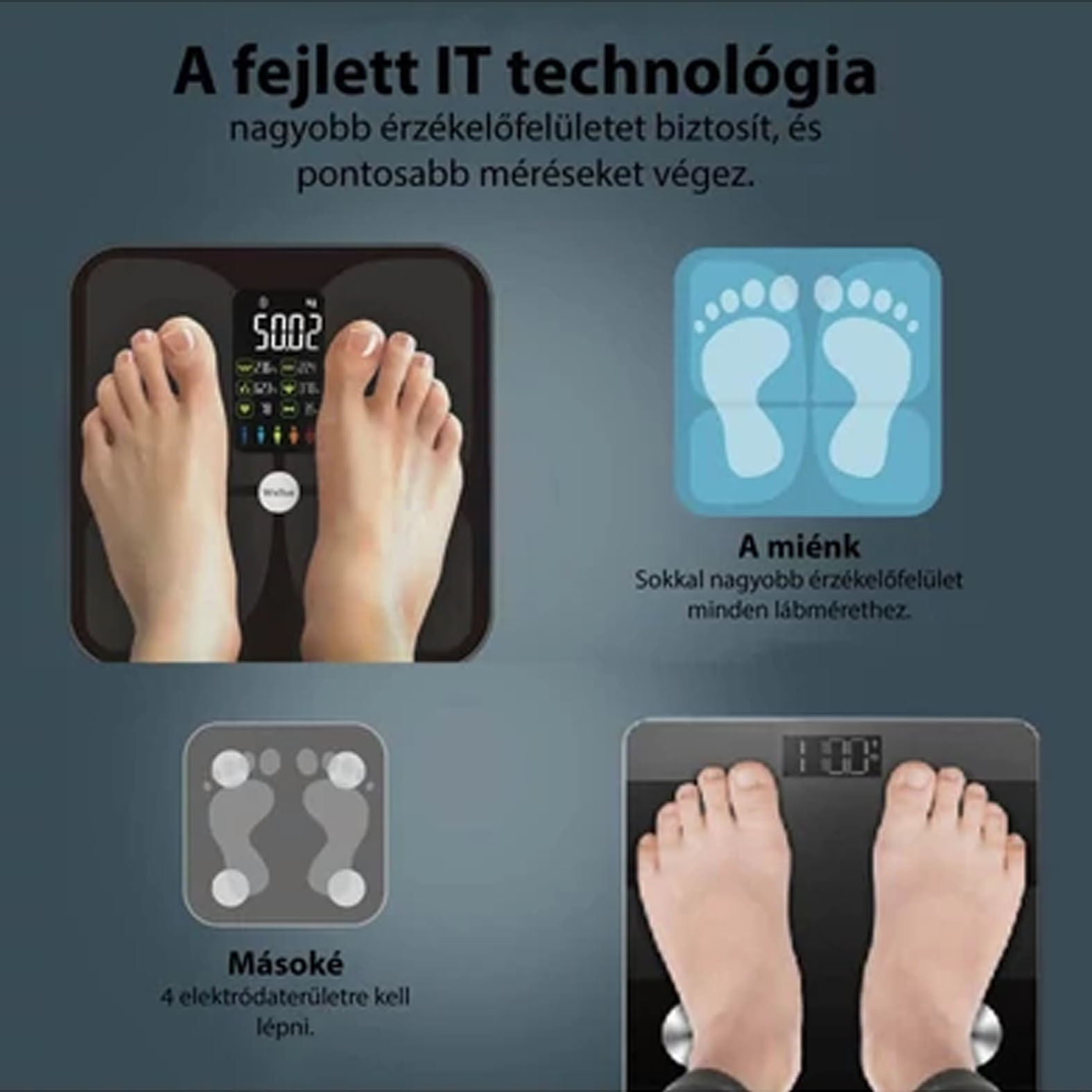 A Vihealth alkalmazás 15 mérési érték részletes diagramjait tartalmazza, és el is menti az előzményadatokat, hogy nyomon követhesse a testösszetétel változását napok, hetek, hónapok vagy akár évek leforgása alatt.