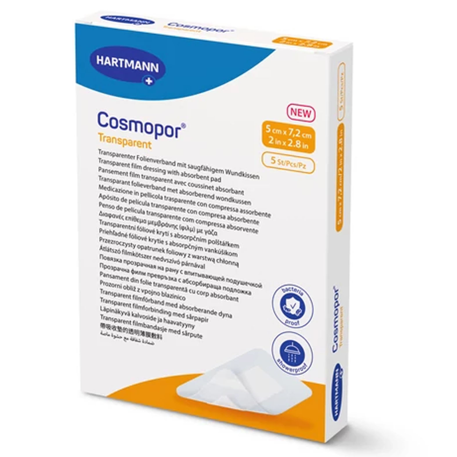 - Mivel a Cosmopor® Transparent kötszer steril és vízálló, minimálisra csökkenti a másodlagos fertőzés kockázatát, és a beteg zuhanyozhat vagy fürödhet.