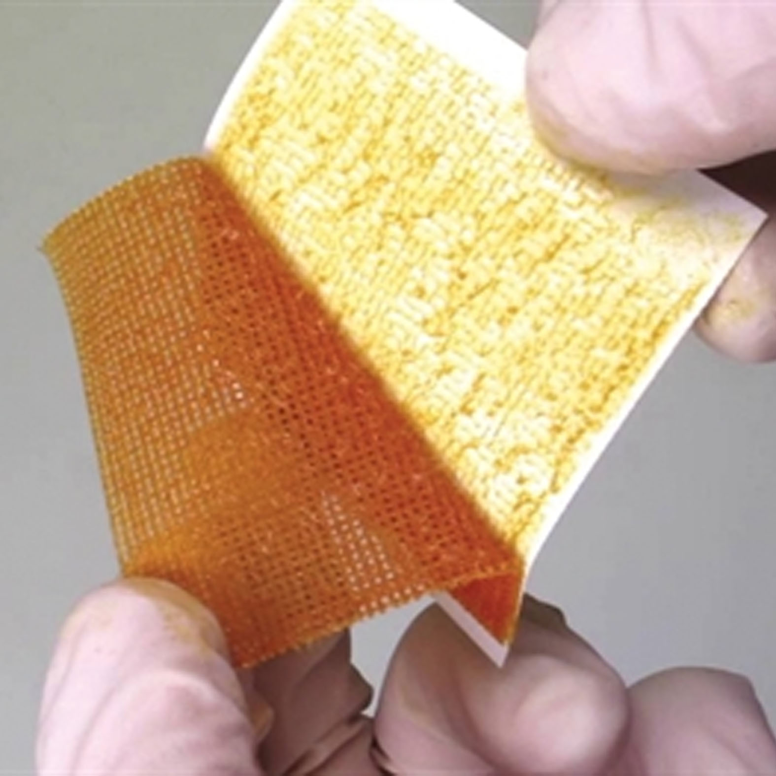 Alacsony tapadási tulajdonságú, viszkózából készült, nem tapadó hálós kötszer, polietilén-glikol (PEG) alapú, 10%-os jód-povidon (PVP-I) impregnálással.