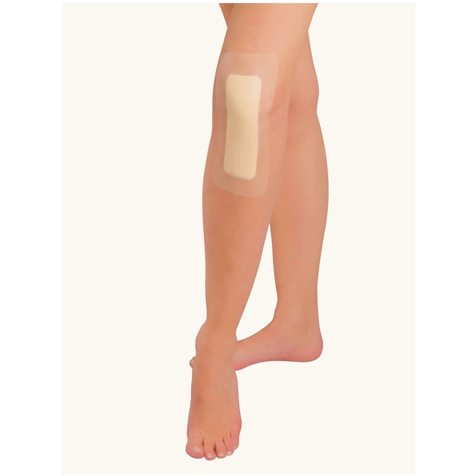 A seb felőli oldalán géllel bevont nedvszívó habkötszer, vízálló, légáteresztő és baktériumálló fedőréteggel.