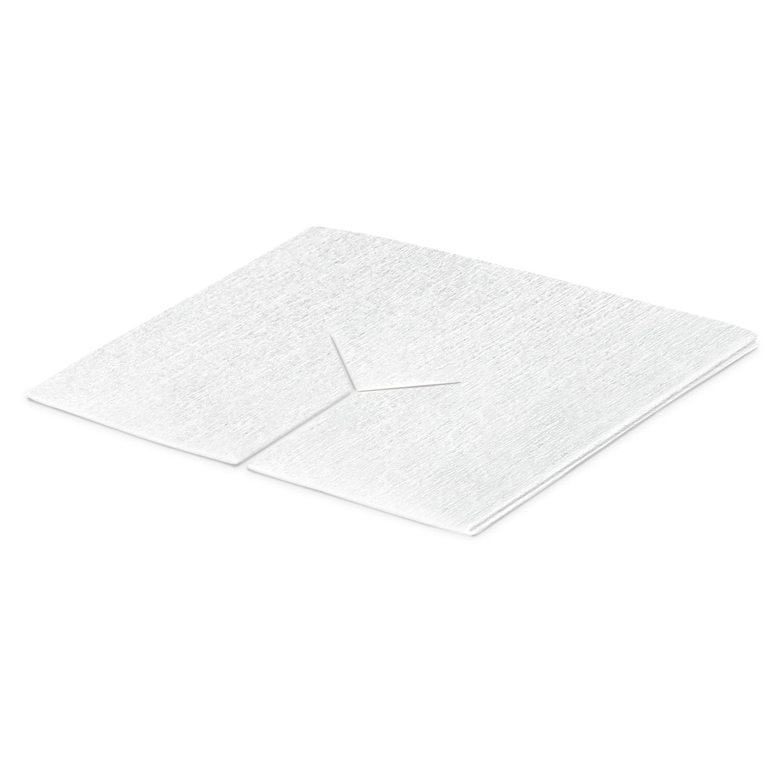 - Viszkóz- és poliészterszálak keverékéből készült steril, nem szőtt törlőkendő, amely különböző méretekben érhető el, egy darab Y-alakú bevágással.
