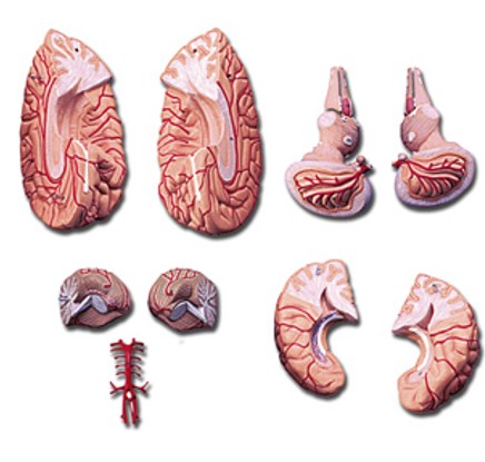 - 9 részes modell, amely bemutetja a temporális és az occipitalis lebenyt, az elülső és a parietális lebenyt, a kisagyat, az agytörzset és az artériát.