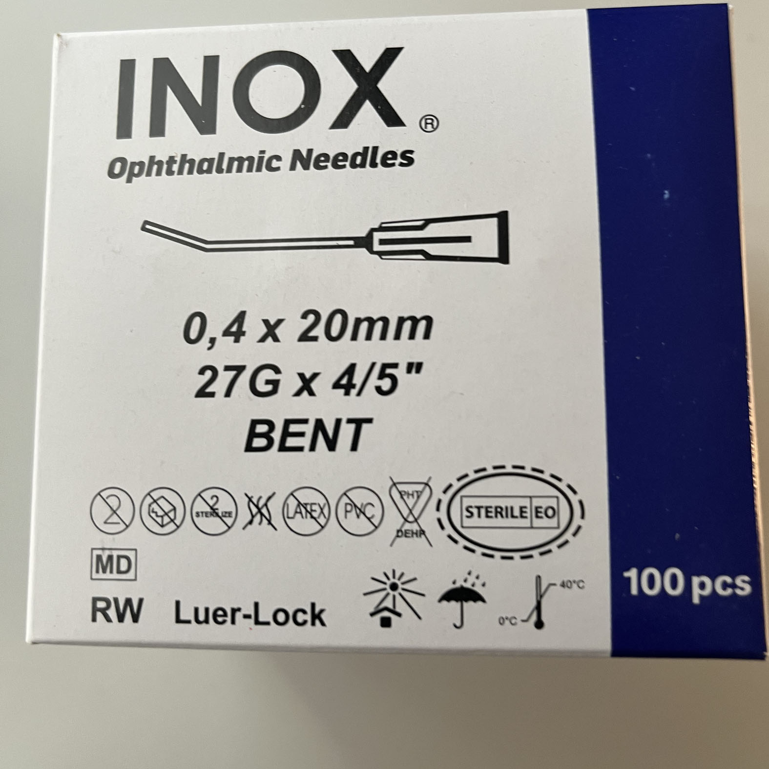 - A tű mérete: 27g (0,4 mm átmérő) és 4/5 hüvelykes (20 mm hossz).