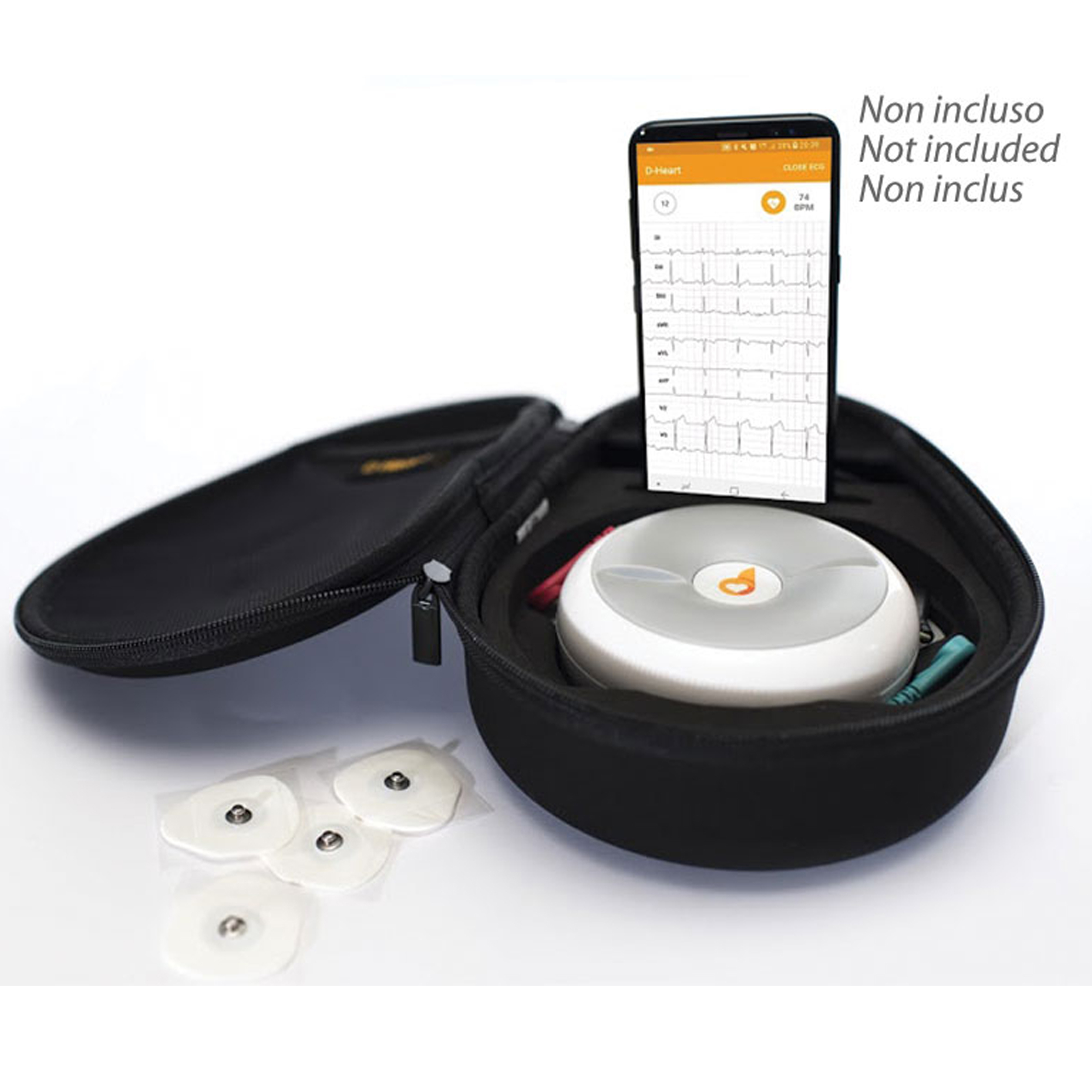 -A D-Heart egy 8 vagy 12 csatornás EKG okostelefonokra, amely lehetővé teszi az EKG-görbék 12 másodperc alatti rögzítését bárhol, bármikor