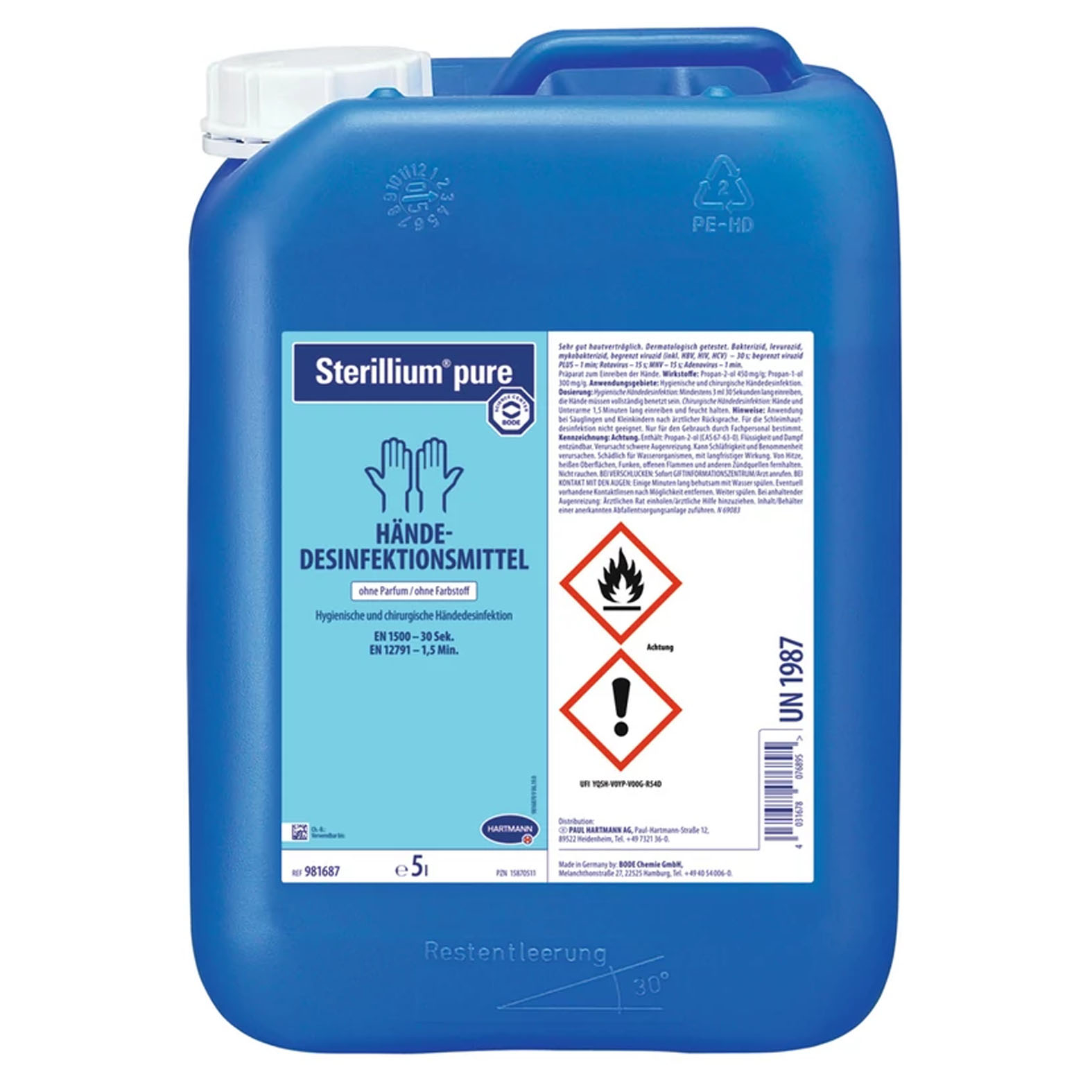 Széles hatásspektrummal rendelkező alkohol alapú kézfertőtlenítőszer, mely hatékony gombákkal, vírusokkal és baktériumokkal szemben. A klasszikus Sterillium kézfertőtlenítőszer színezék- és illatanyagmentes változata. Rendszeres használatával nő a bőr hidratáltsága. Nagyon jó bőrtoleranciával rendelkezik, még hosszantartó használat esetén is.