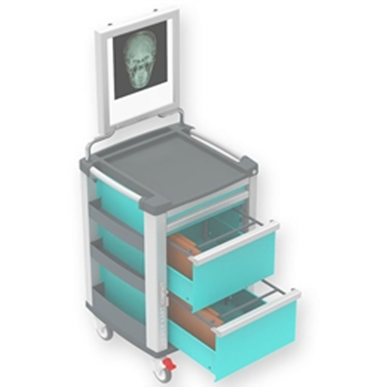 VIEWER radiológiai kocsi - türkiz, 4 fiókos, 65,4 x 60,5 x 97,5 cm
