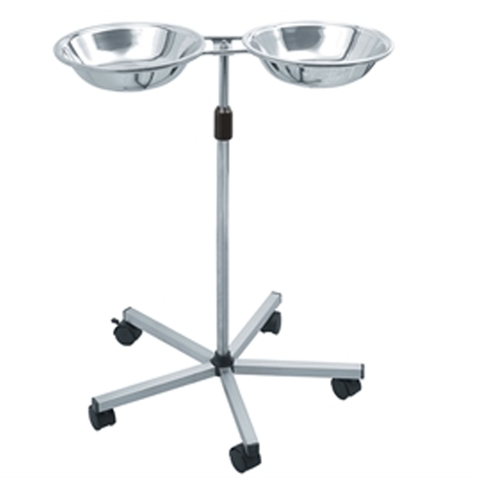 - aisi 202 rozsdamentes acél állvány és talp 5 műanyag kerékkel, az egyik fékkel