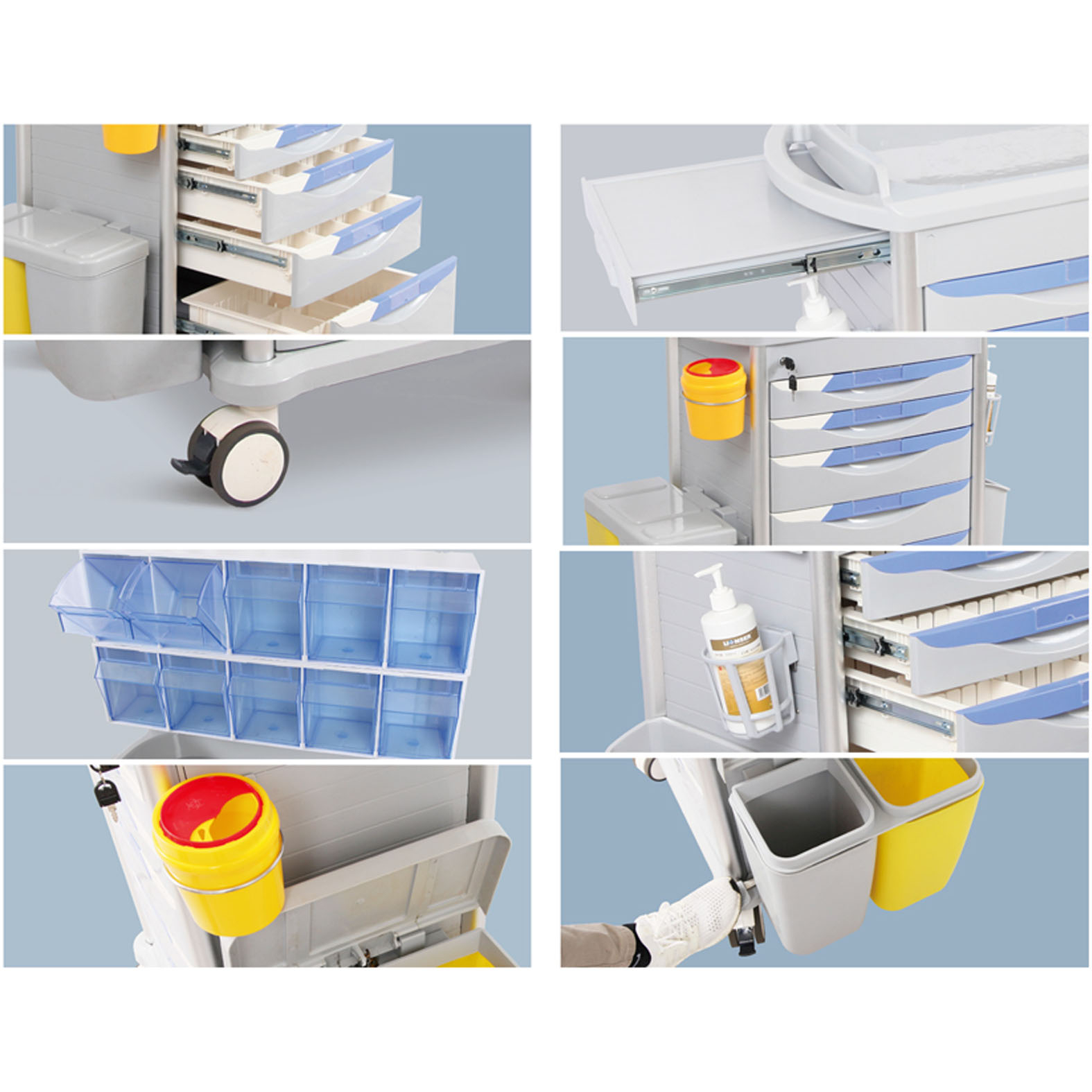 Altatókocsi ABS-ből és antibakteriális külső anyagból, belső szerkezete acélból és alumíniumból készült.