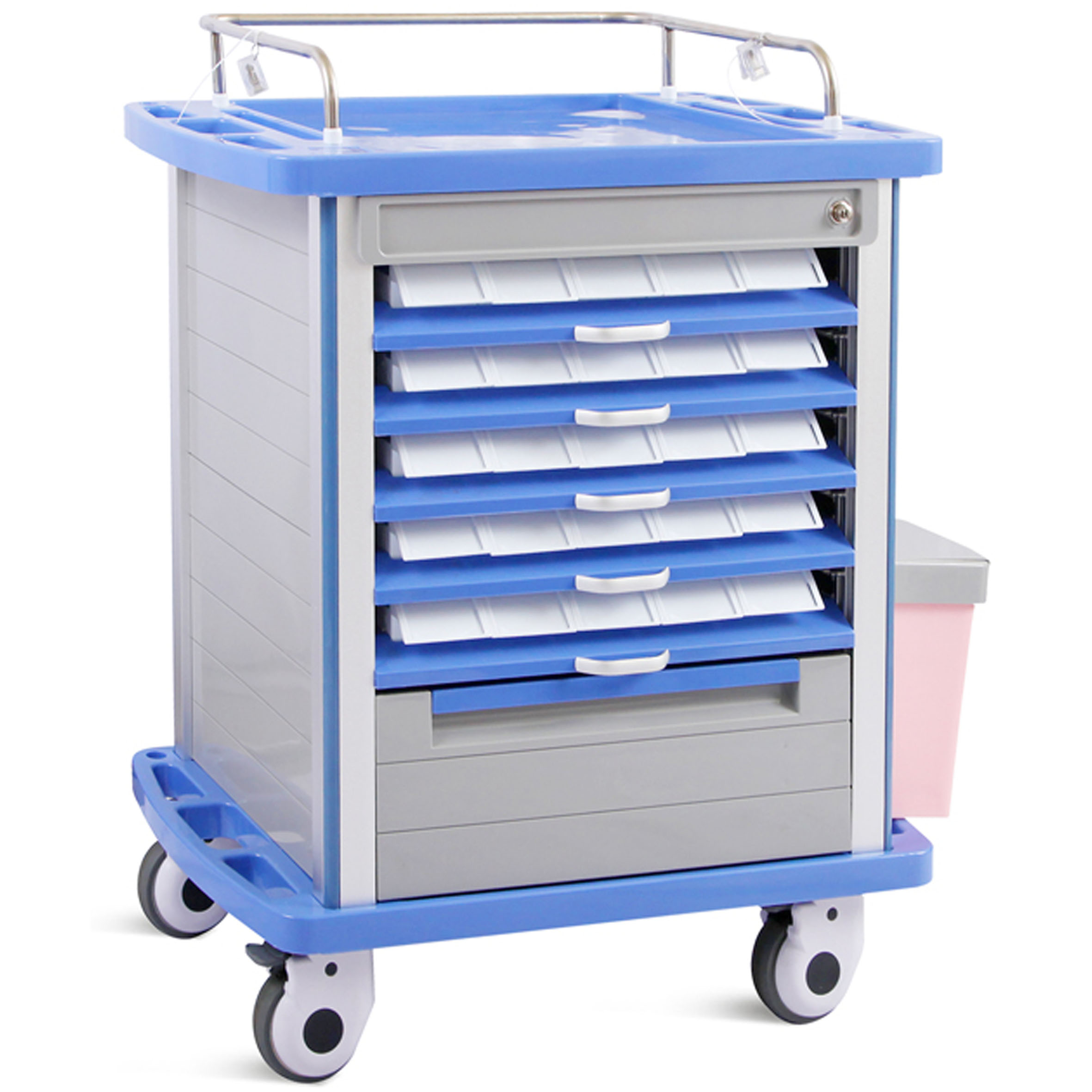 -Kétoldalas gyógyszeres kocsi acél és alumínium szerkezettel belül, ABS és antibakteriális anyaggal kívül