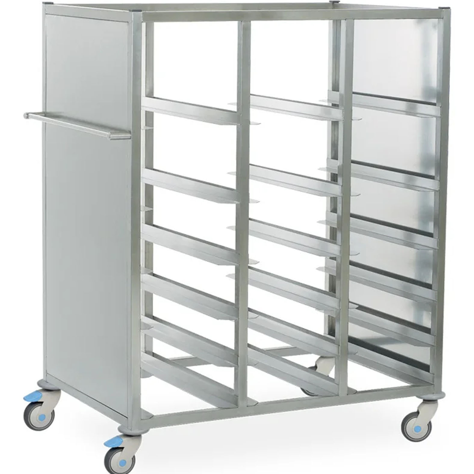 Az MSAK 8000 modell Kosár- és Tartálykocsik a sterilizáló helyiségekben használt tartályok, tálcák és kosarak szállítására lettek tervezve. Olyan rendszert biztosítanak, amely lehetővé teszi akár 18 különböző tálca egyidejű szállítását.