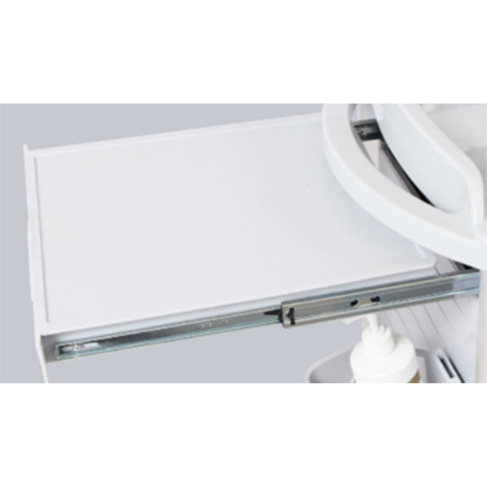 5 tágas és mély fiókkal rendelkezik elválasztókkal, valamint 4 db Ø 10 cm-es kerékkel (ebből 2 fékezhető).