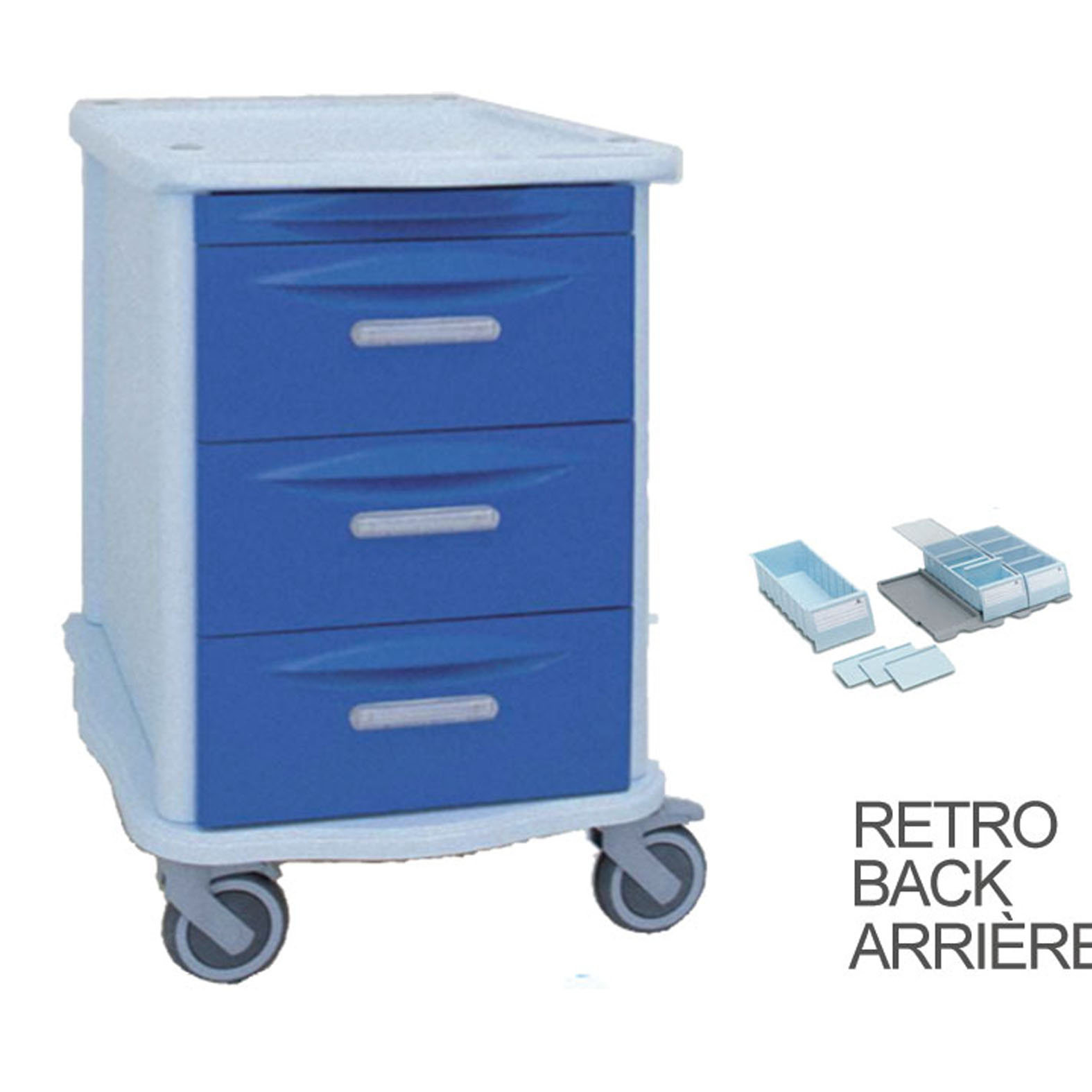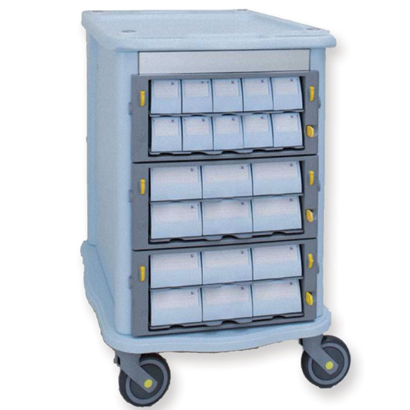 Gyógyszerosztó kocsi 3 nagy, 22 kis fiókkal