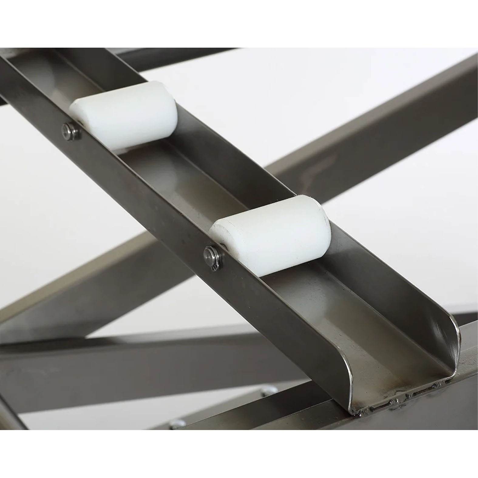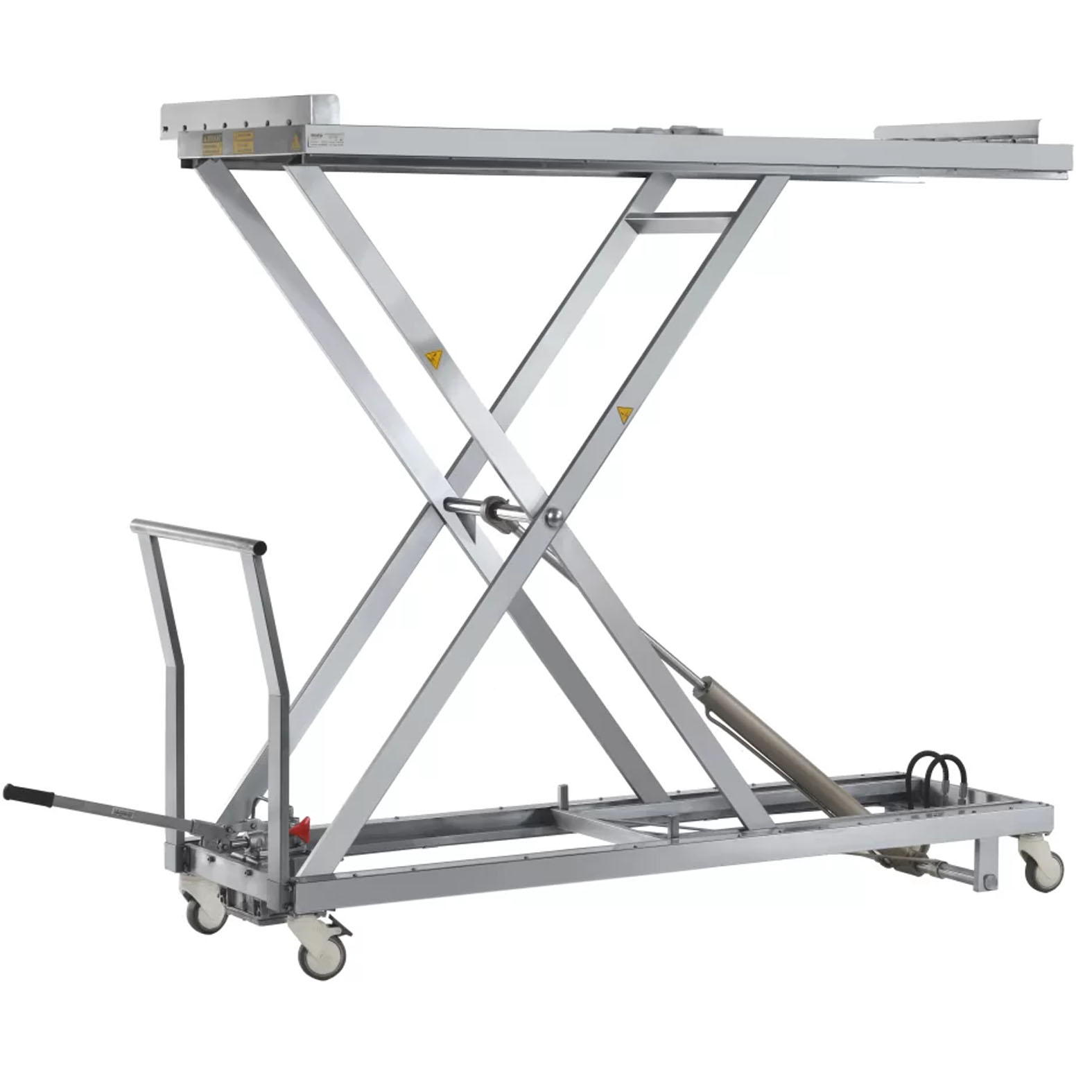 Hidraulikus emelőrendszerrel van felszerelve, amelyet lábpedál segítségével működtethetünk, lehetővé téve a testek könnyed és szabályozott emelését. A hidraulikus mechanizmus sima és pontos mozgást biztosít, amely akár 150 kg-os súlyokat is képes emelni.