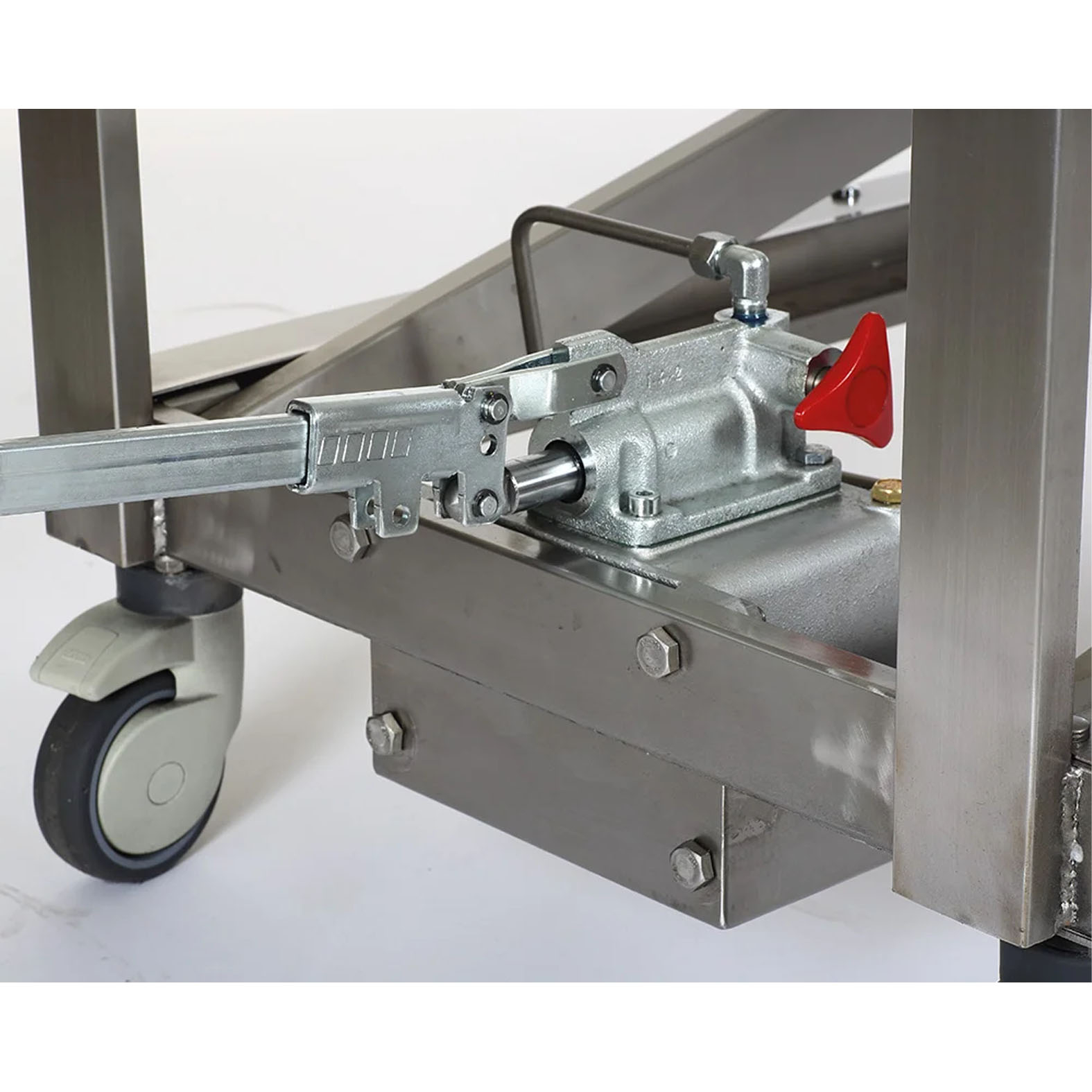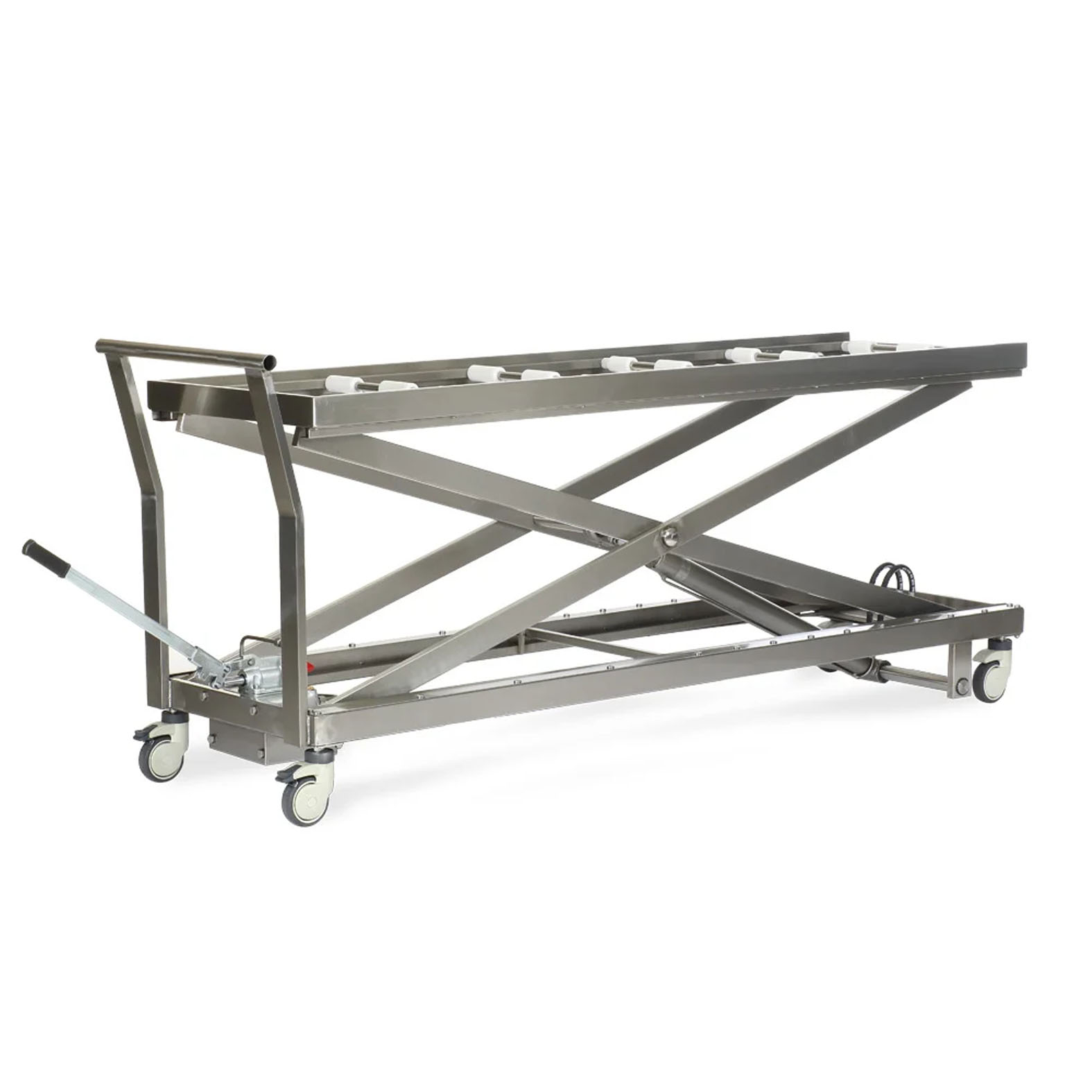 A rozsdamentes acél holttestemelőt leginkább boncolások során használják, hogy felemeljék és elhelyezzék a testeket a boncasztalon, így lehetővé téve az orvosi szakemberek számára a vizsgálatokat és kezeléseket. A hullaházi szállítóeszközök fontos szerepet játszanak a hullaházi eljárások során, mint az embalming (tarlózás), tisztítás és öltöztetés, segítve a testek mozgathatóságát és igazítását. Emellett kulcsszerepet töltenek be a testek biztonságos szállításában a hullaházakon, temetkezési vállalkozásokon vagy egészségügyi intézményeken belül, csökkentve a sérülés kockázatát a szállítás alatt. A hullaházi emelőeszközök segítenek optimalizálni a tárolóhelyek kihasználtságát azzal, hogy segítenek a testek polcokra vagy állványokra helyezésében, biztosítva a rendezett és hatékony tárolást. A holttestemelők javítják a holttestek kezelésének biztonságát, hatékonyságát és méltóságát az eljárás különböző szakaszaiban.