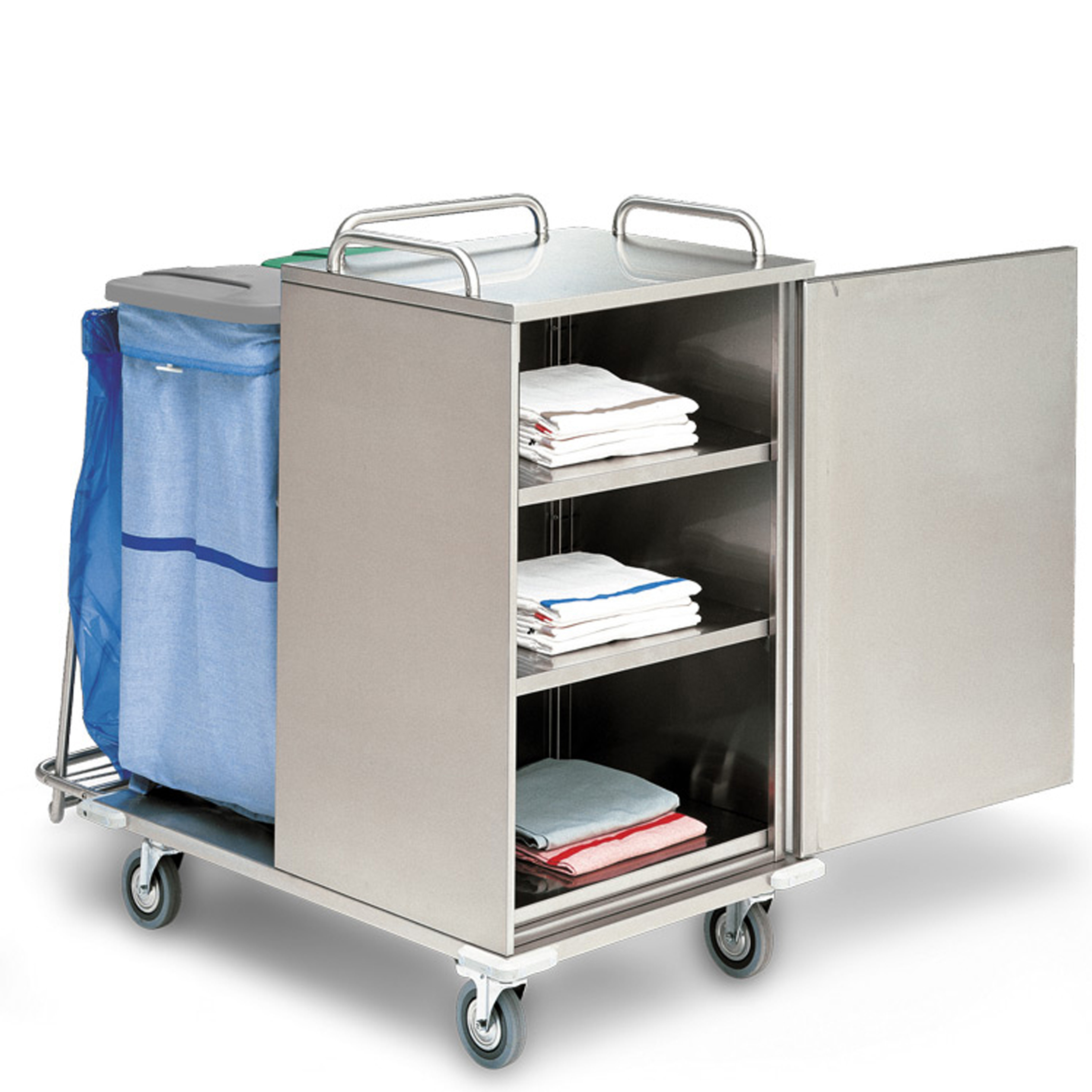 Szennyesgyűjtő és ágyazó kocsi - zárható, rozsdamentes