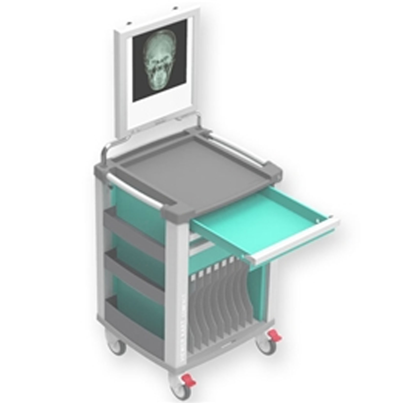 VIEWER-2 radiológiai kocsi - türkiz, 3 fiókos, 65,4 x 60,5 x 97,5 cm