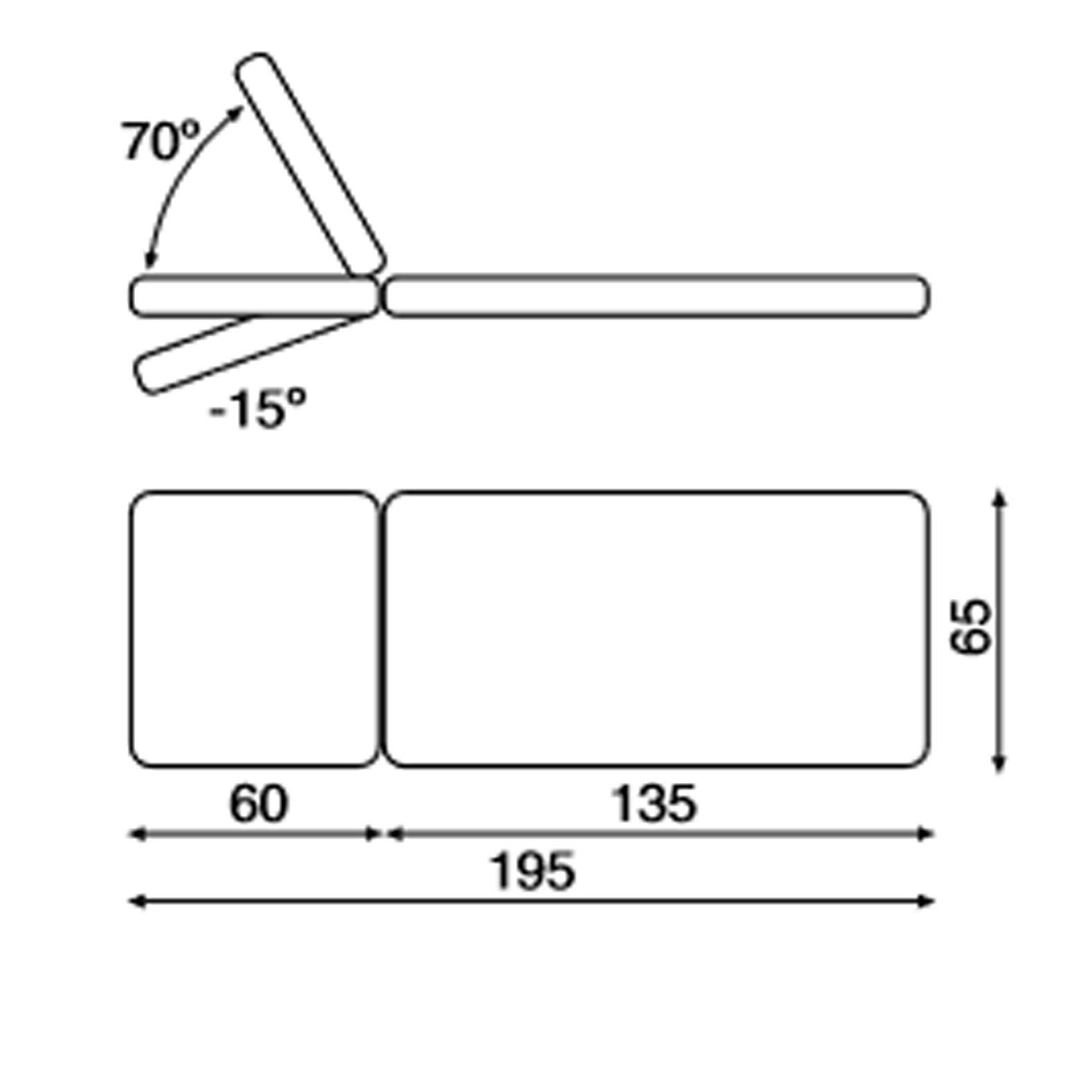 -• Teljes méretek: 195 x 65 cm