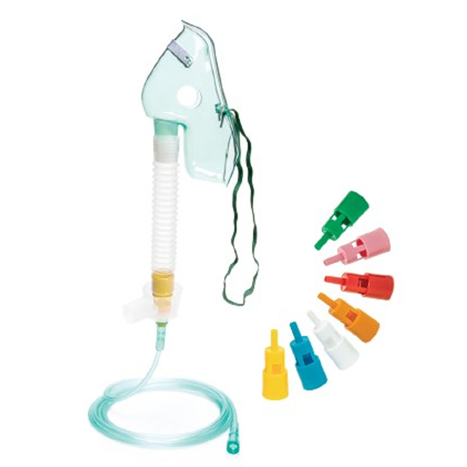 A rendszer különböző színkóddal ellátott Venturi-szelepekkel érhető el, amelyek mindegyike előre beállított, pontos oxigénkoncentrációt biztosít.