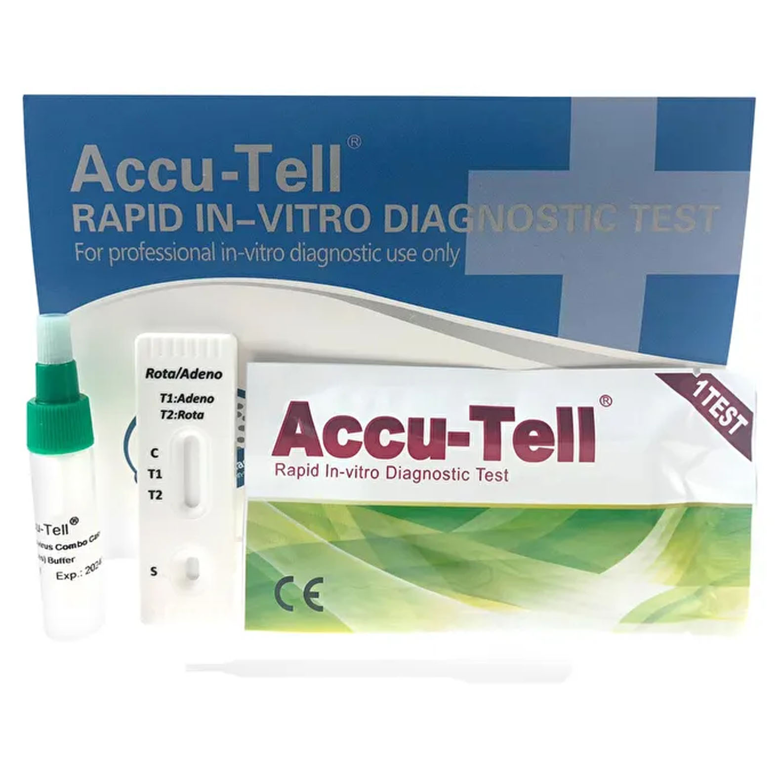 - az AccuBioTech CE-minősítésű Accu-Tell® Adenovírus/Rotavírus Kombinált Gyorstesztje a Rota és Adenovírusok kvalitatív kimutatására szolgál emberi székletmintákban