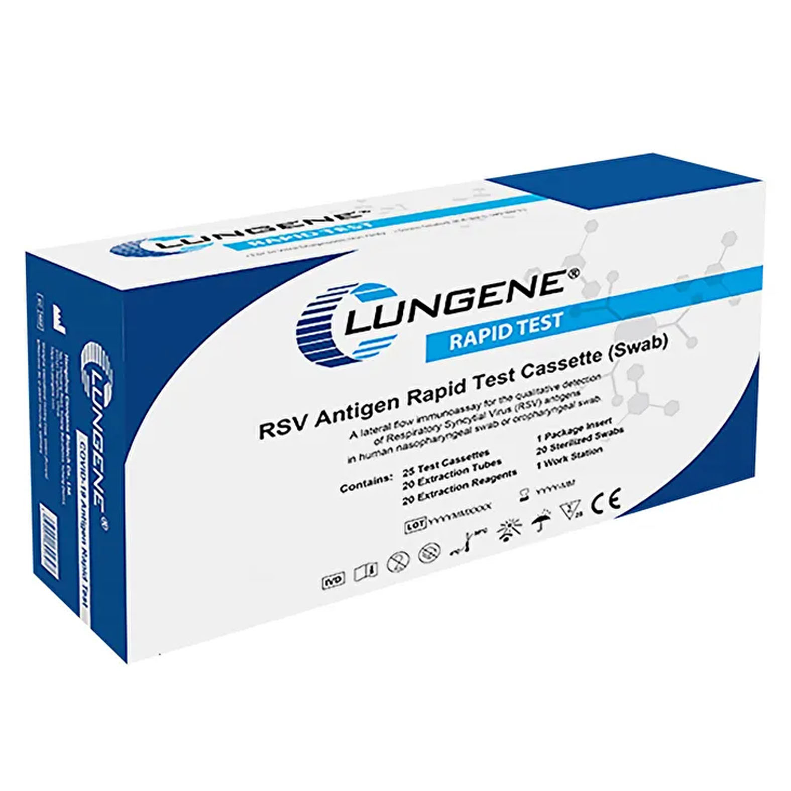 A Clungene RSV gyorsteszt egy laterális flow immunoassay a呼吸道合胞 vírus (RSV – Respiratory Syncytial Virus) kvalitatív (minőségi) kimutatására emberi orr-garat (nasopharyngealis) vagy száj-garat (oropharyngealis) törletmintákból. A gyorsteszt kiválóan alkalmas a betegellátás helyszínén (Point-of-Care) történő alkalmazásra, és kizárólag professzionális in vitro diagnosztikai használatra készült.