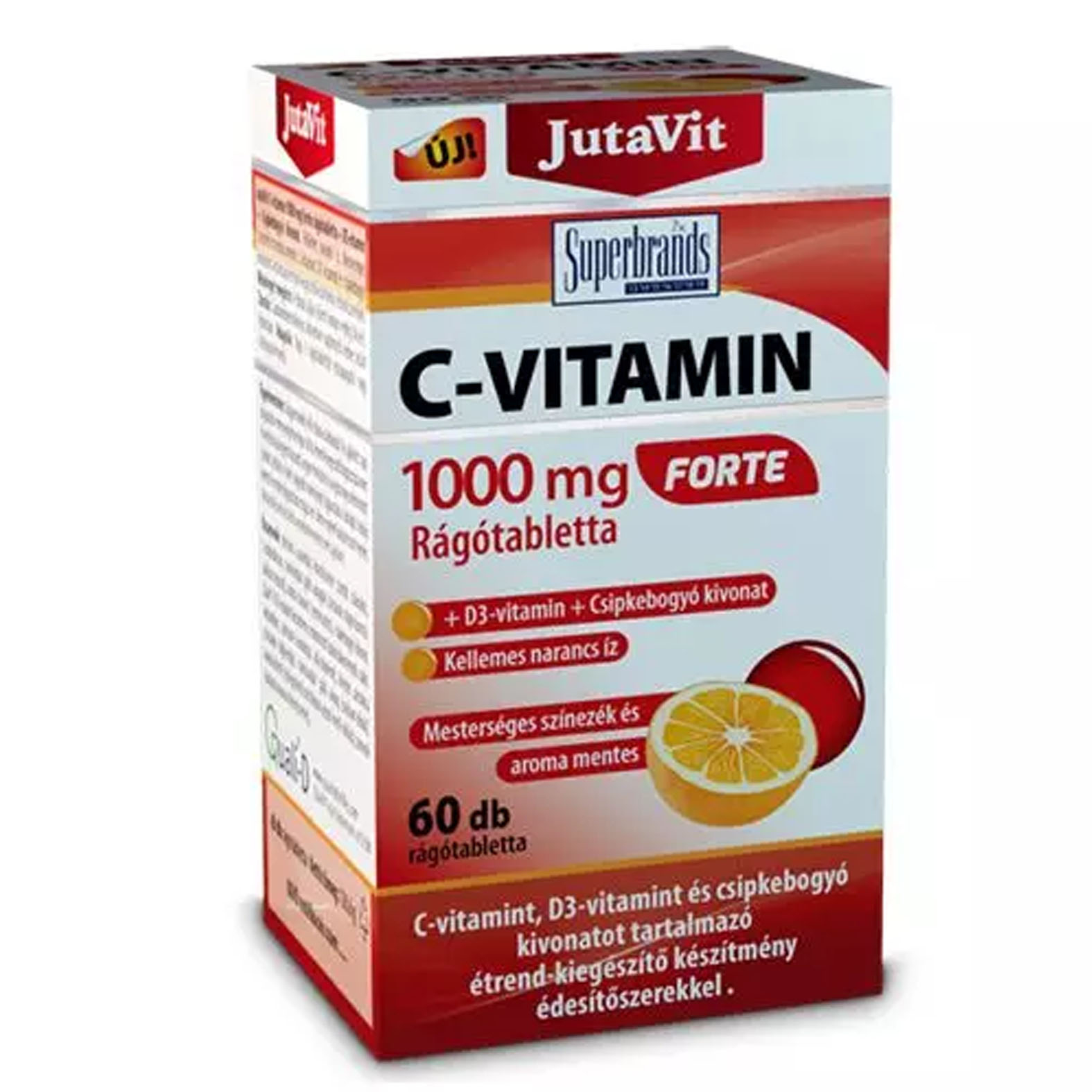 C-vitamint, D3-vitamint és csipkebogyó kivonatot tartalmazó étrend-kiegészítő készítmény édesítőszerekkel.